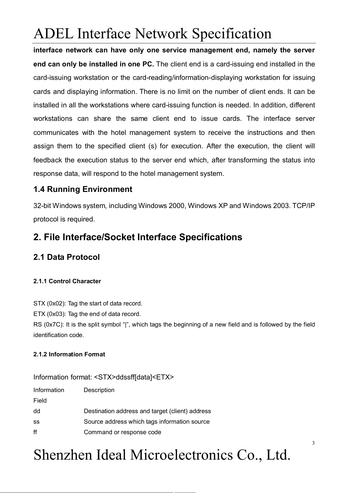 2. File Interface/Socket Interface Specifications 2.1 Data Protocol 2.1.1 Control Character