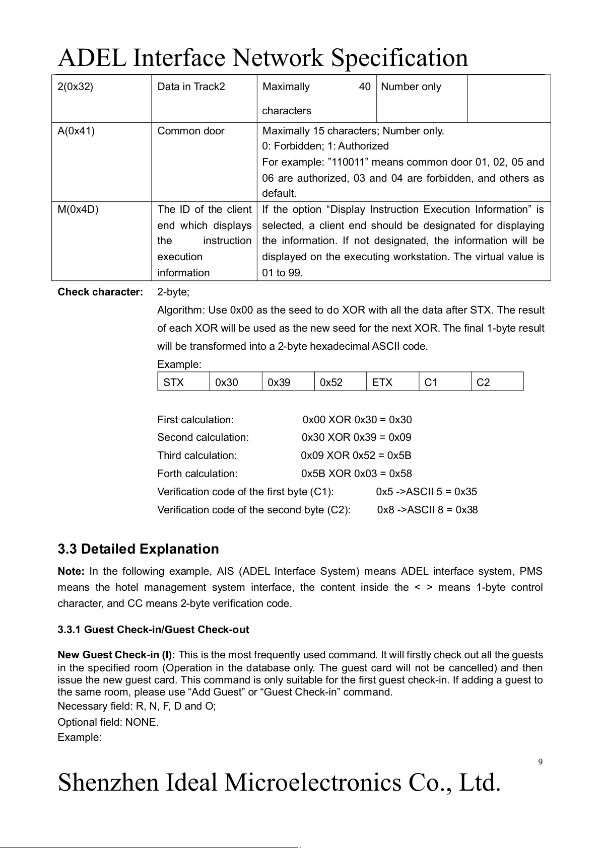 ADEL Interface Network Specification 2(0x32) Data in Track2 Maximally 40 Number only characters A(0x41) Common door