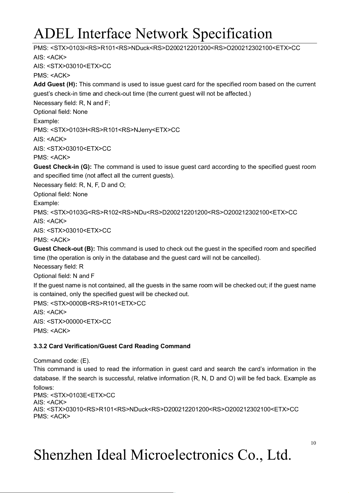 3.3.2 Card Verification/Guest Card Reading Command ................................................................. 10 1