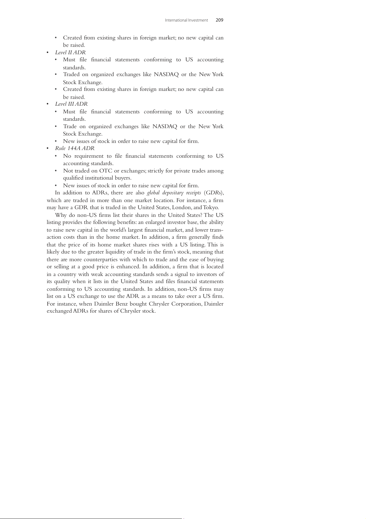 not traded on an exchange like NASDAQ or the New York Stock Exchange. International Investment 209 ●