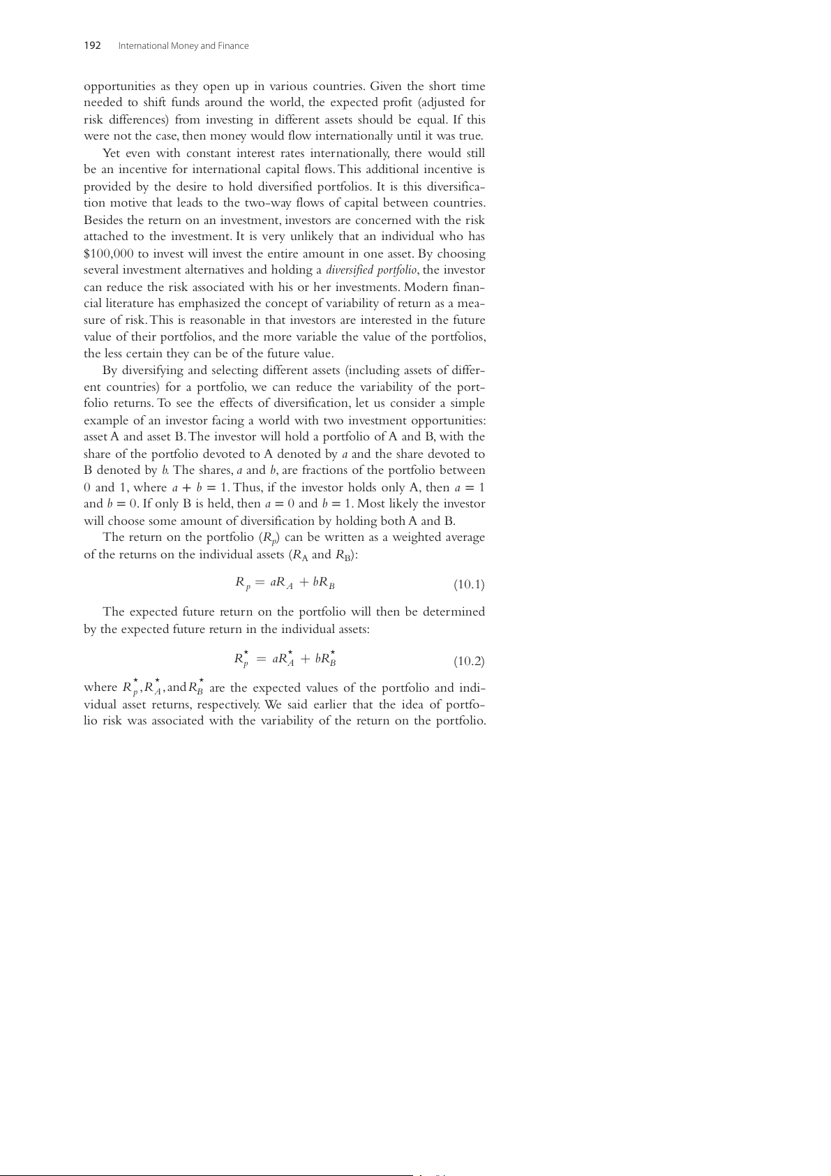 by the expected future return in the individual assets: * * * R = aR + bR p A B (10.2)