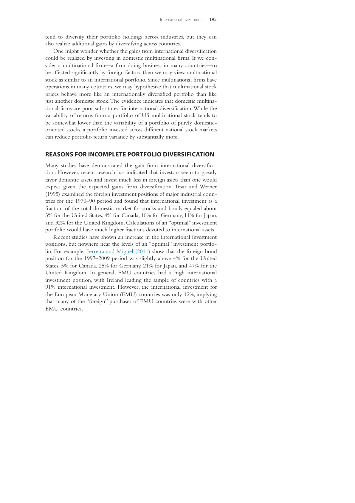 Reasons for Incomplete Portfolio Diversification 195