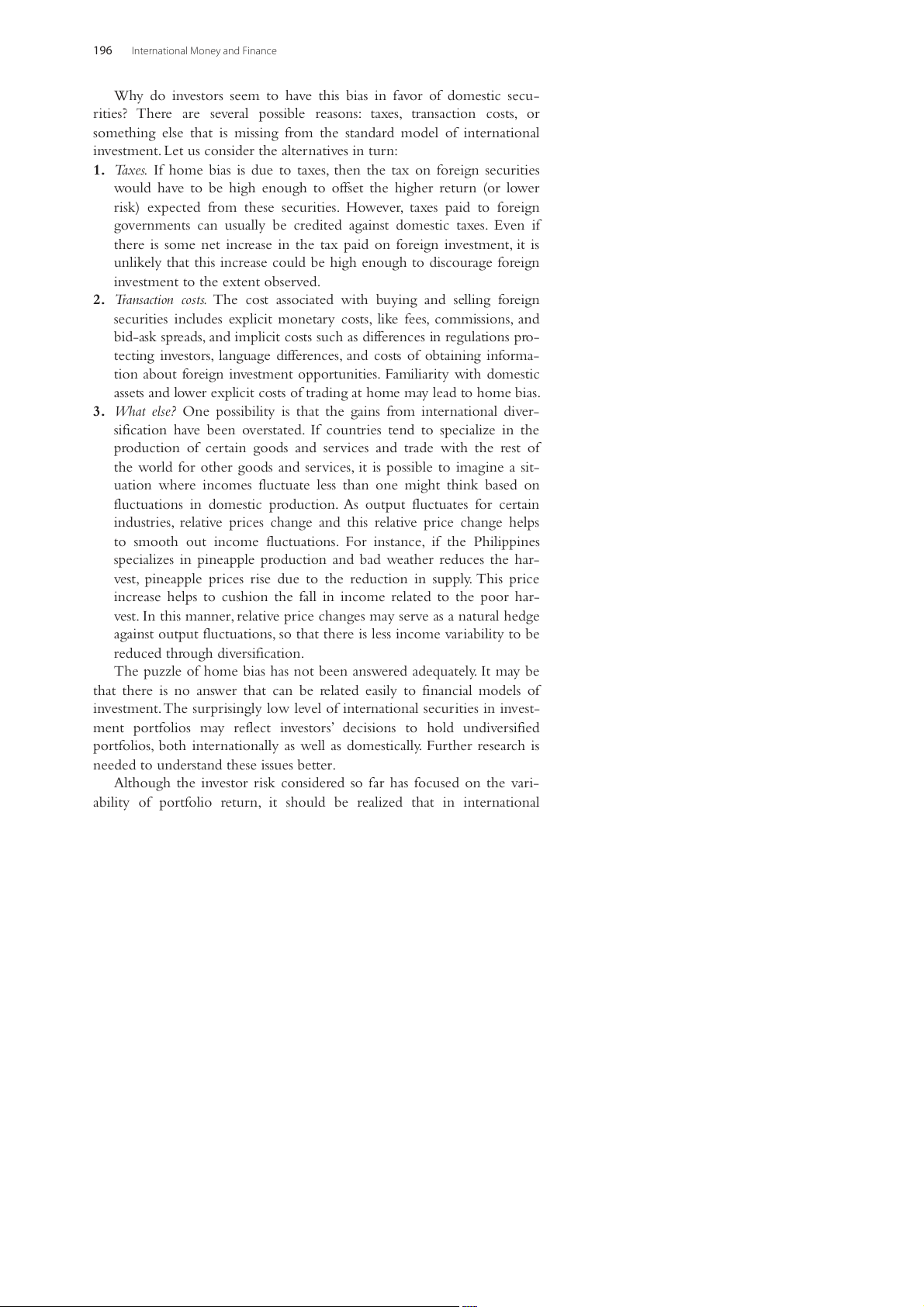 will lead investors to hold many different assets, including assets from dif- ferent countries.