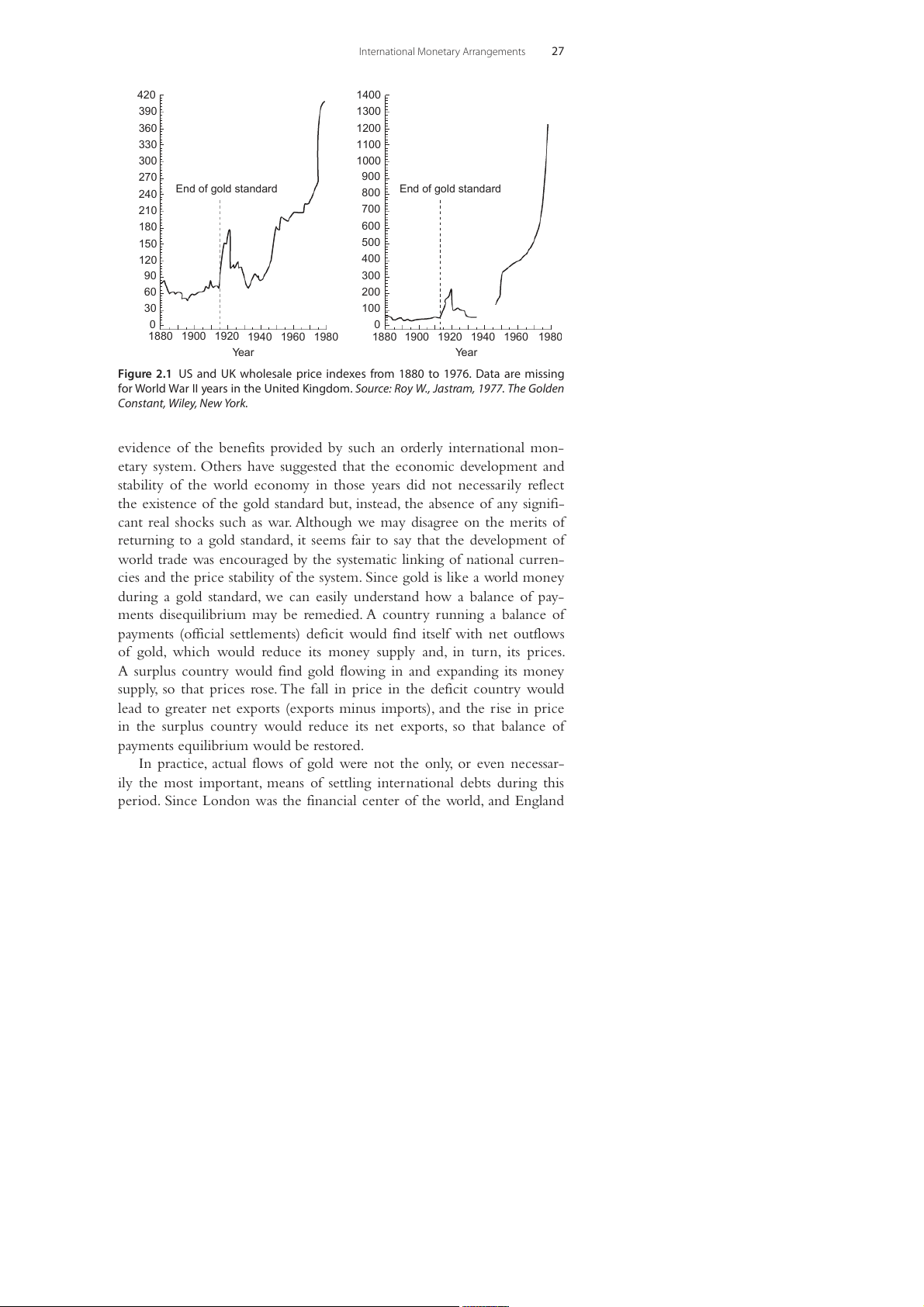 Figure 2.1 US and UK wholesale price indexes from 1880 to 1976. Data are missing