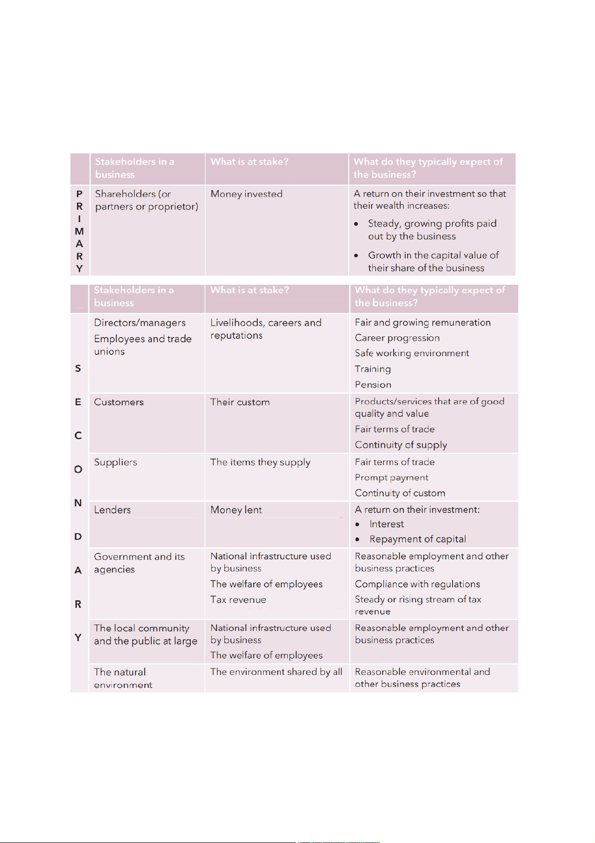 -Stakeholders: level of interest of stakeholders in a business -> Where their interest rests? How these interest are?