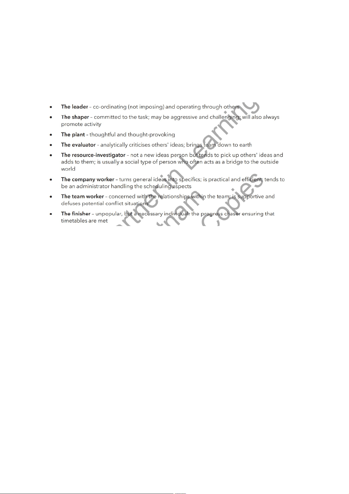 Leader, shaper, plant, evaluator (người sẽ critize ideas of others), resources- investigator, company
