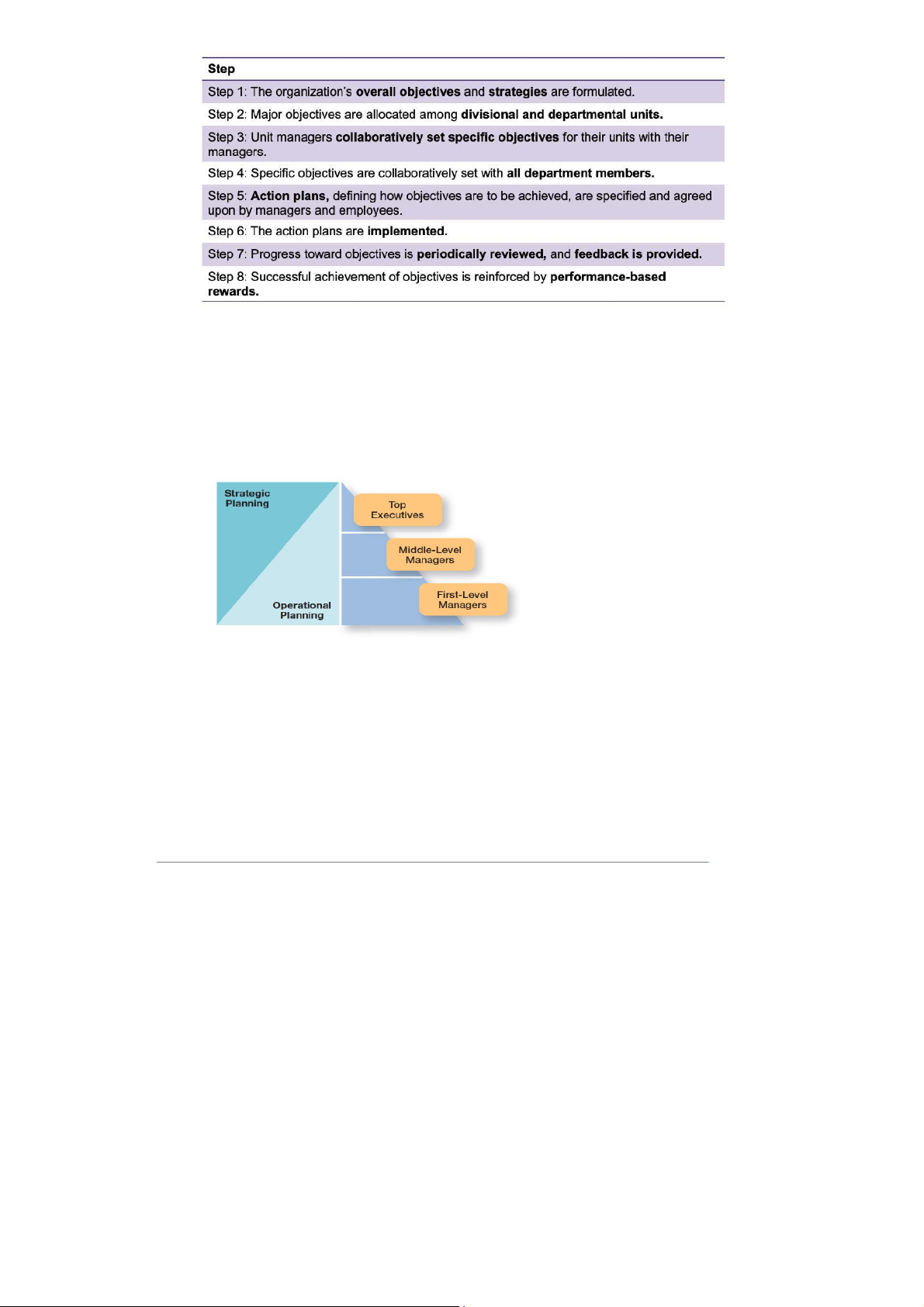 those goals to evalute emplyee performance. Steps in MBO