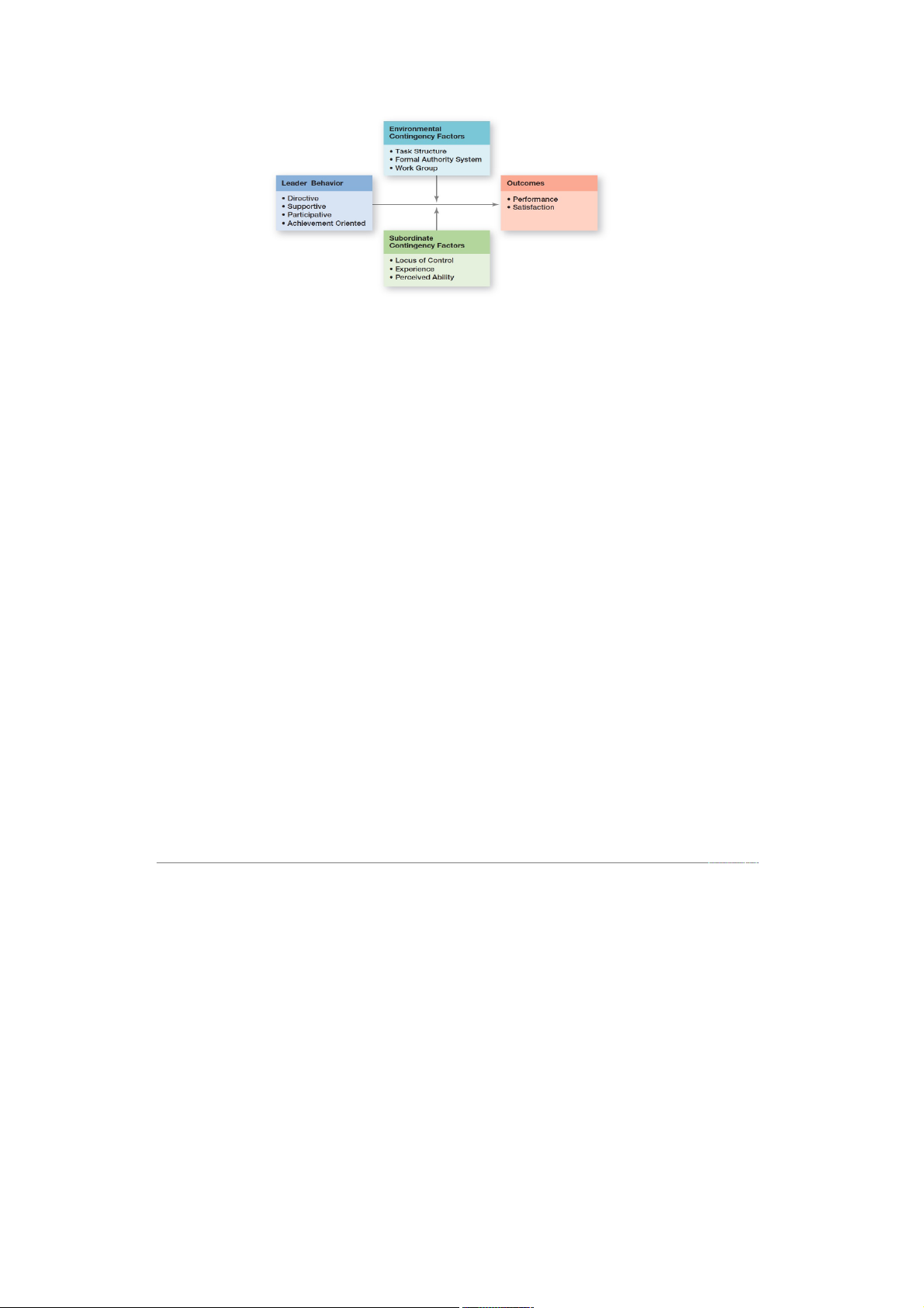 - Production oriented: tended to emphasize the task aspects of the job 6. The Fiedler model