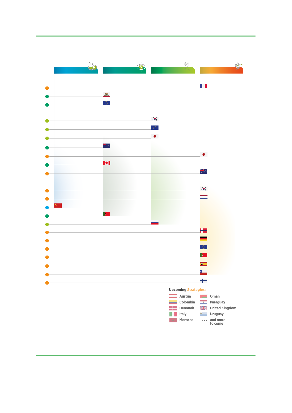 Republic of Korea Strategy Netherlands Strategy China R&D programme Portugal Vision document Russia Roadmap Norway Strategy Germany Strategy European Union Strategy Portugal Strategy Spain Strategy Chile Strategy Finland Strategy Upcoming Strategies: Austria Oman Colombia Paraguay Denmark United Kingdom Italy Uruguay Morocco and more to come Source: (IRENA, 2020d). 20