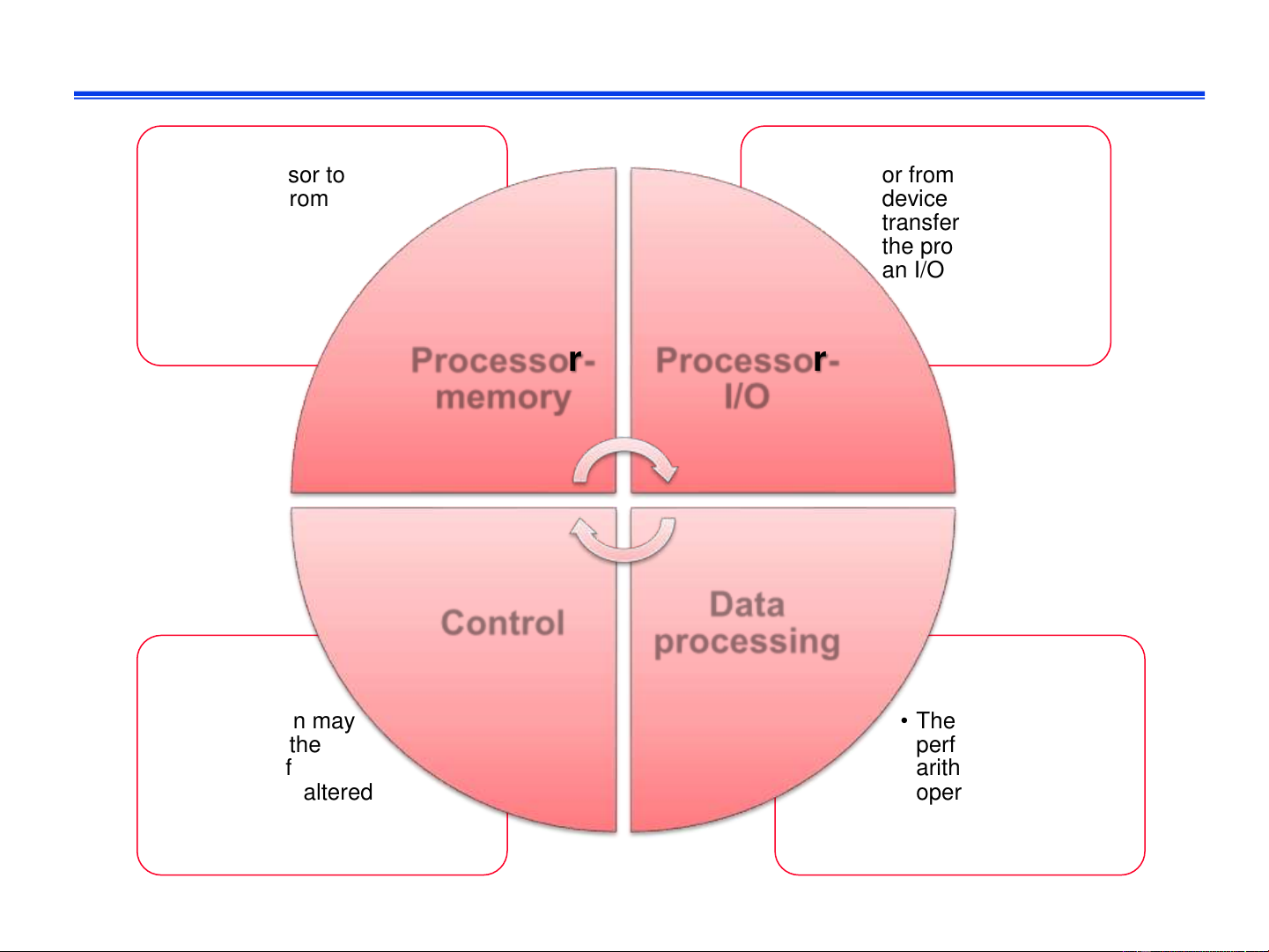 ❑ Operand store: store result into destination operand IT3030E Fall 2024 16 Types of operation • Data transferred • Data transferred to from processor to or from a peripheral memory or from device by memory to transferring between processor the processor and an I/O module Processor- Processor- memory I/O Data Control processing • An instruction may • The processor may specify that the perform some sequence of arithmetic or logic execution be altered operation on data IT3030E Fall 2024 17 Example