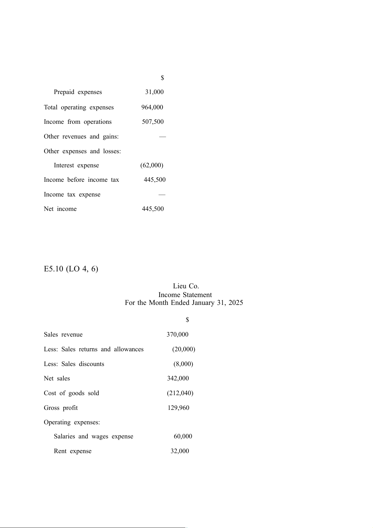 E5.10 (LO 4, 6) Lieu Co. Income Statement
