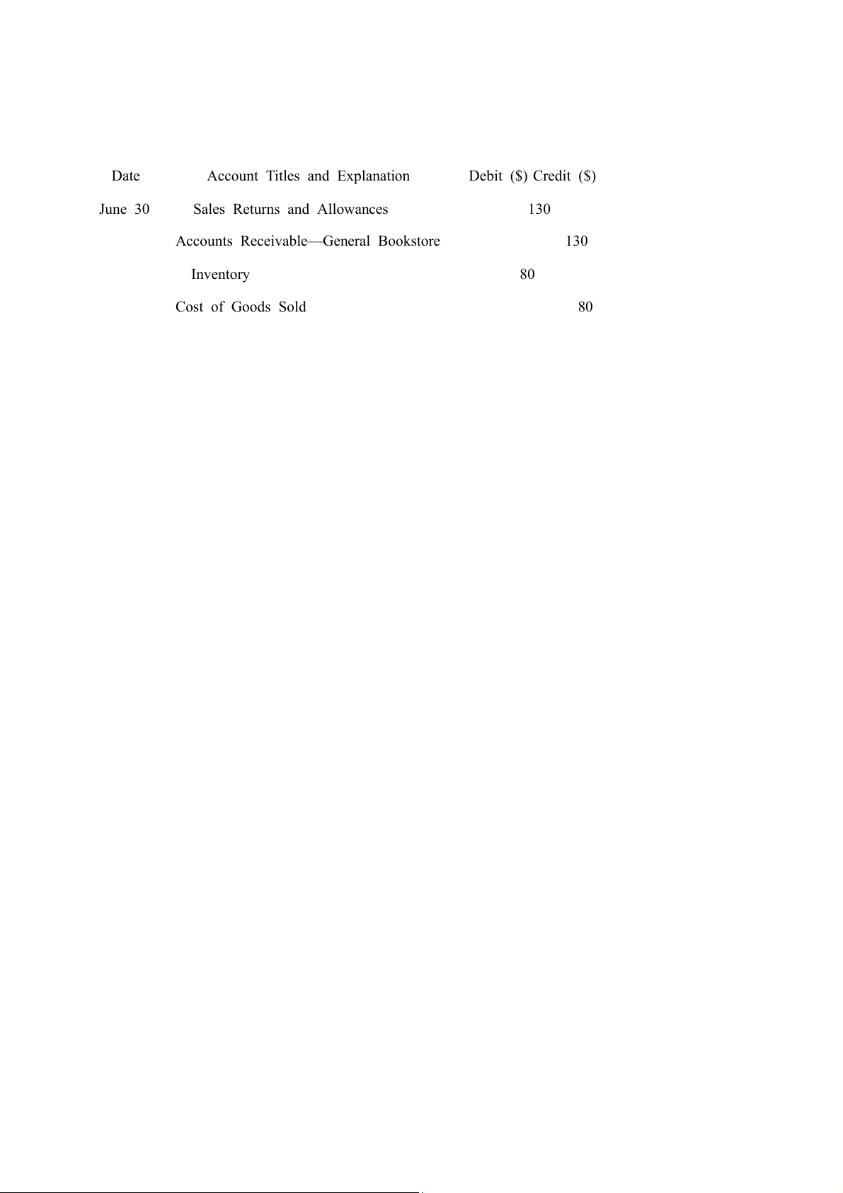 Accounts Receivable—General Bookstore 130 Inventory 80 Cost of Goods Sold 80