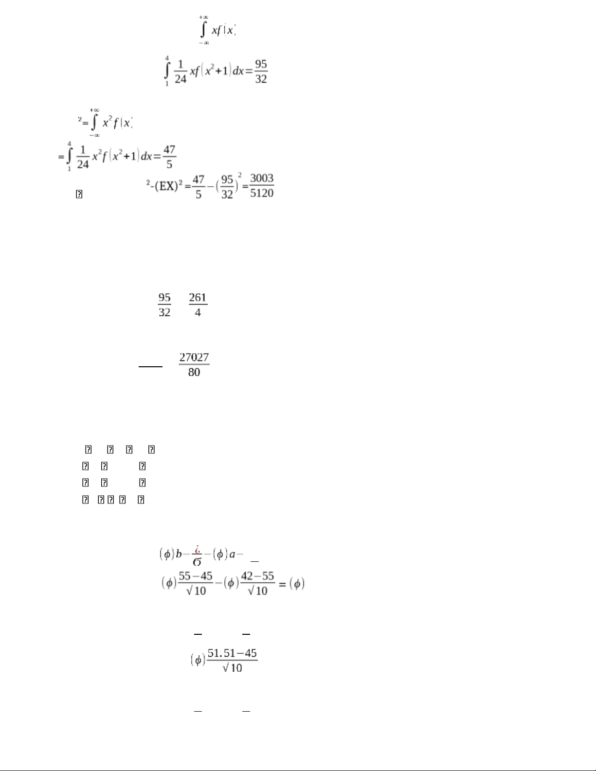 Phương sai: Var(X)= E(X)2-(EX)2 E(X) dx Var(X)= E(X) c) Kì v ng và phọ ương sai c a (24x-6)ủ E(24X-6) = E(24X)-E(6) = 24EX-6 =24. −6=