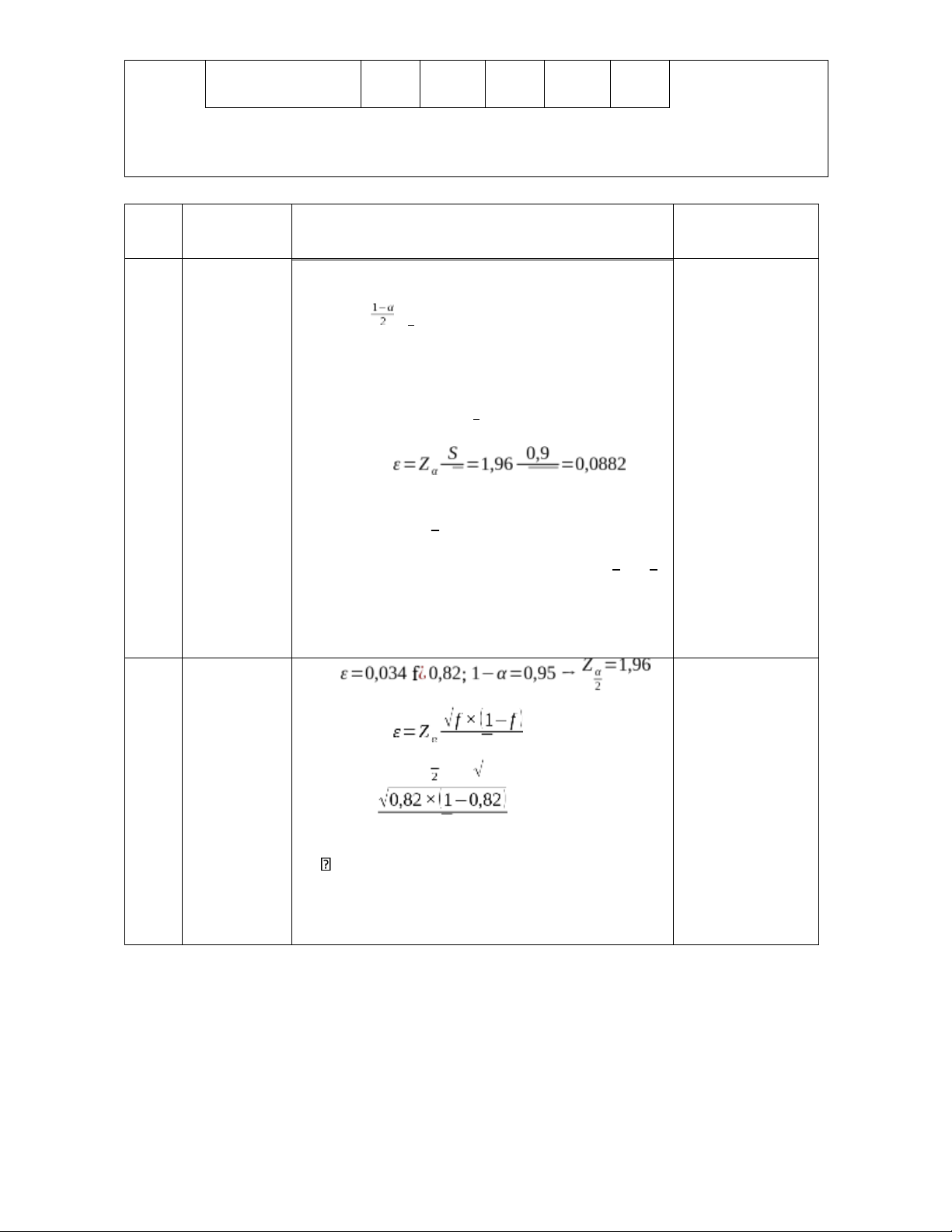 bình c a m i nhân viên: ủ ỗ (9,9118;10,0882) 2 A Ta có Do đó ta có thay vào ta được n 0,034=1,96 √n N ≈491 V y ậ c n kh o sầ ả át thêm 491 – 205 = 286 người. lOMoARcPSD| 61538472 3 A Theo bài ta có: n = 25; ; 1−α=0,95