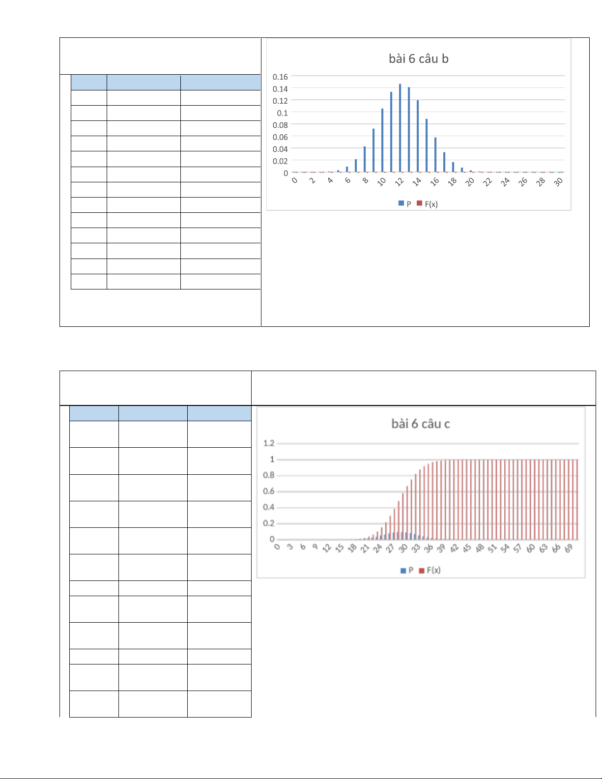 Bài 6. Sử dụng excel tìm bảng phân phối xác suất và vẽ đồ thị tương ứng cho biến ngẫu nhiên X
