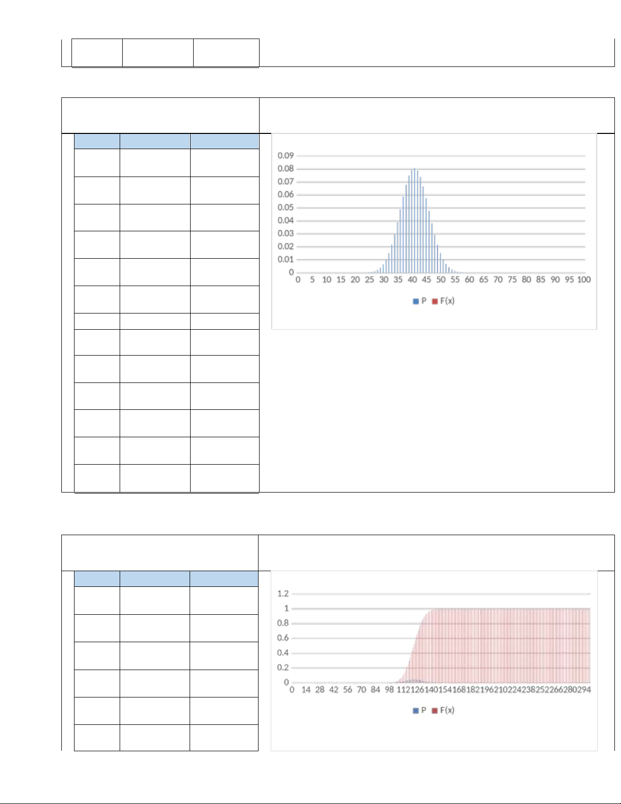 B ngả phân ph i xác su tố ấ Hình Minh H aọ X P F(x) lOMoARcPSD| 61538472 0 0,0051111 0,0051111 68 68 1 0,0355182 0,0406294 5 83 2 0,1110698 0,1516993 85 35 3 0,2058244 0,3575237 19 54 4 0,2503034 0,6078271 25 78 5 0,2087276 0,8165547 8 01 6 0,1208733 0,9374281 29 08 7 0,0479981 0,9854262 26 34 8 0,0125079 0,9979342 2 86 9 0,0019315 0,9998657 53 73 10 0,0001342 27 1 b. n= 30 p=0,41 lOMoARcPSD| 61538472 X P F(x) 0 1,33524E-07 1,33524E-07 1 2,78364E-06 1,33524E-07 2 2,80487E-05 1,33524E-07 3 0,000181921 1,33524E-07 4 0,000853331 1,33524E-07 5 0,003083562 1,33524E-07 … … … 25 2,12662E-06 1,33524E-07 26 2,84196E-07 1,33524E-07 27 2,92581E-08 1,33524E-07 28 2,17842E-09 1,33524E-07 29 1,04401E-10 1,33524E-07 30 2,41833E-12 1,33524E-07 c. n = 70 p=0,41