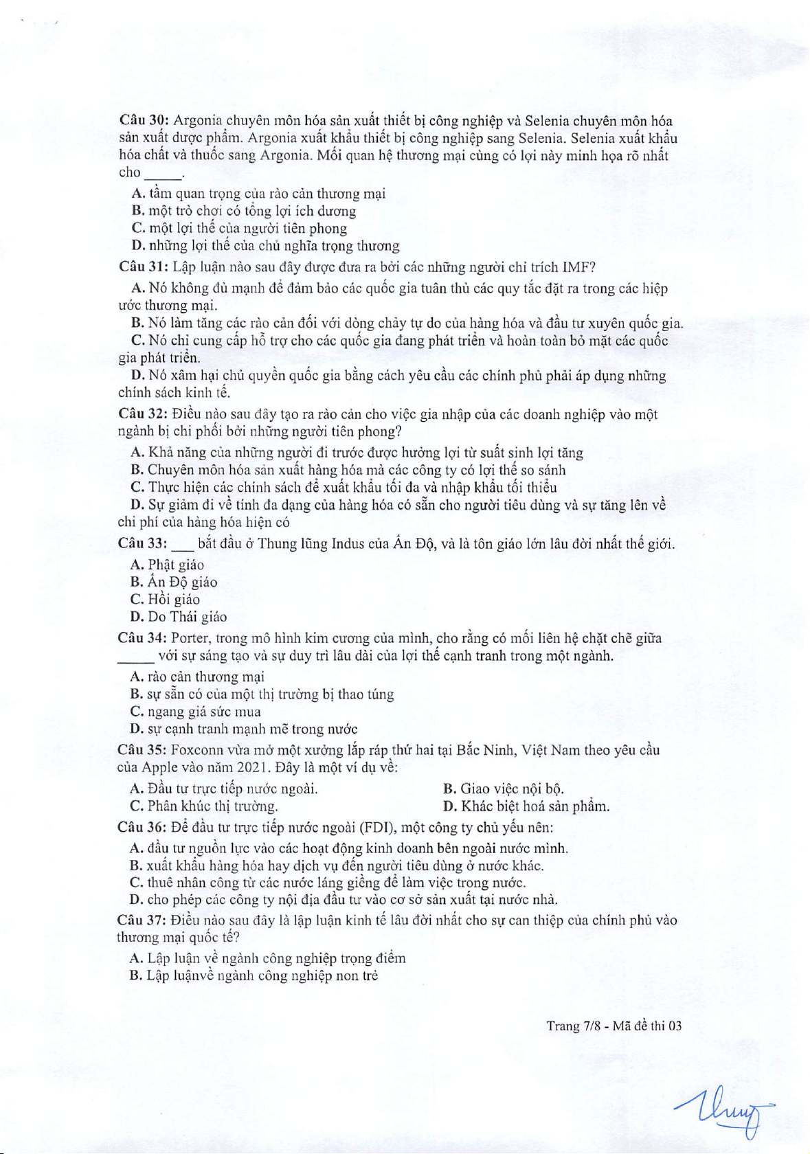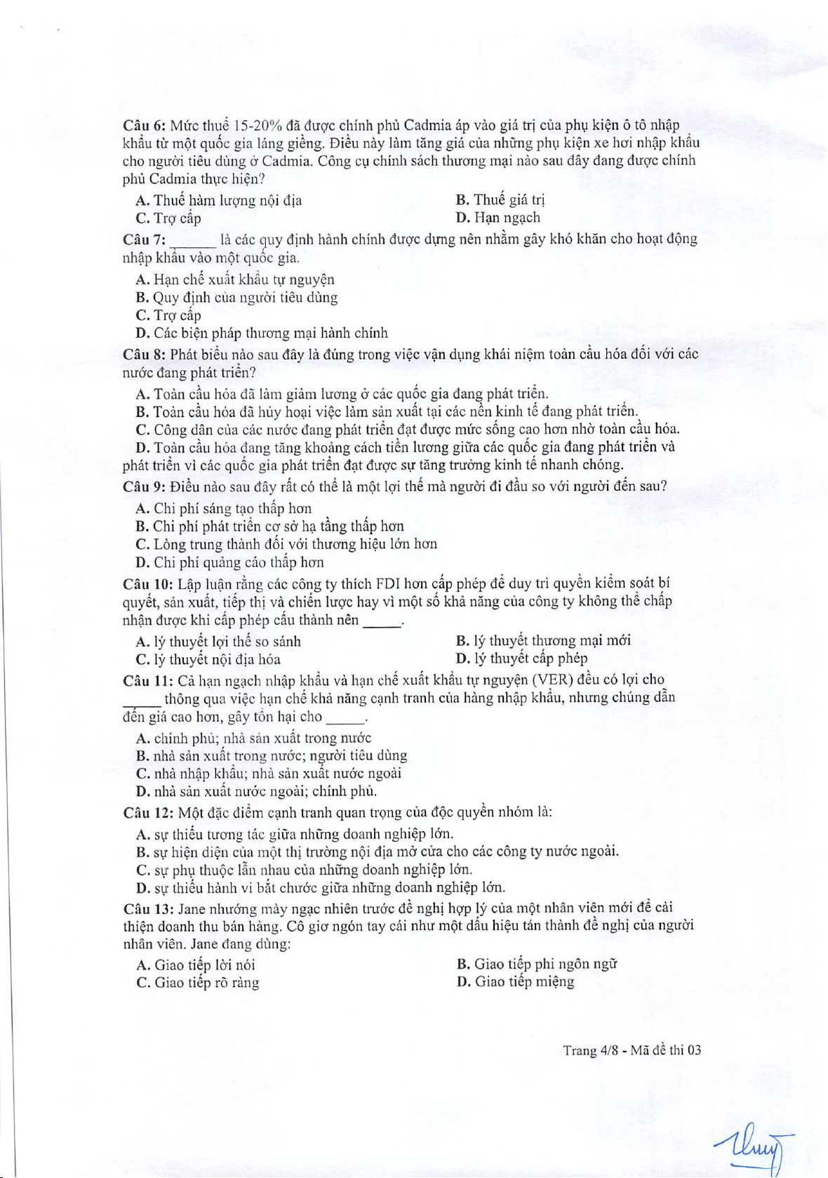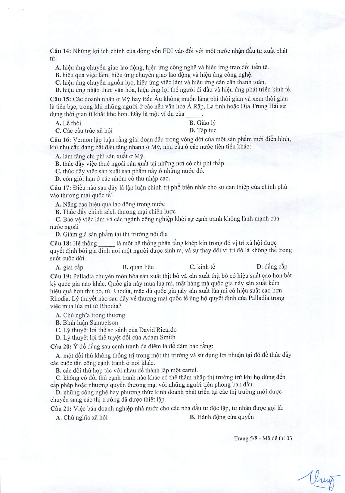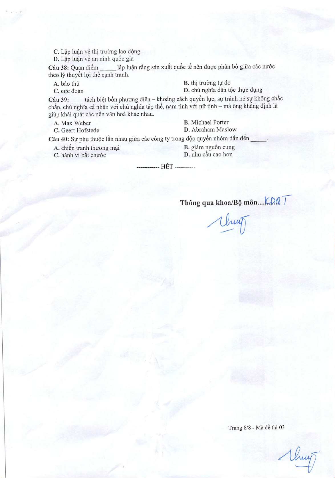 Đề học kì (2021 - 2022)_Đề trắc nghiệm_03 môn Kinh doanh quản trị | Trường Đại học Kinh Doanh và Công Nghệ Hà Nội
