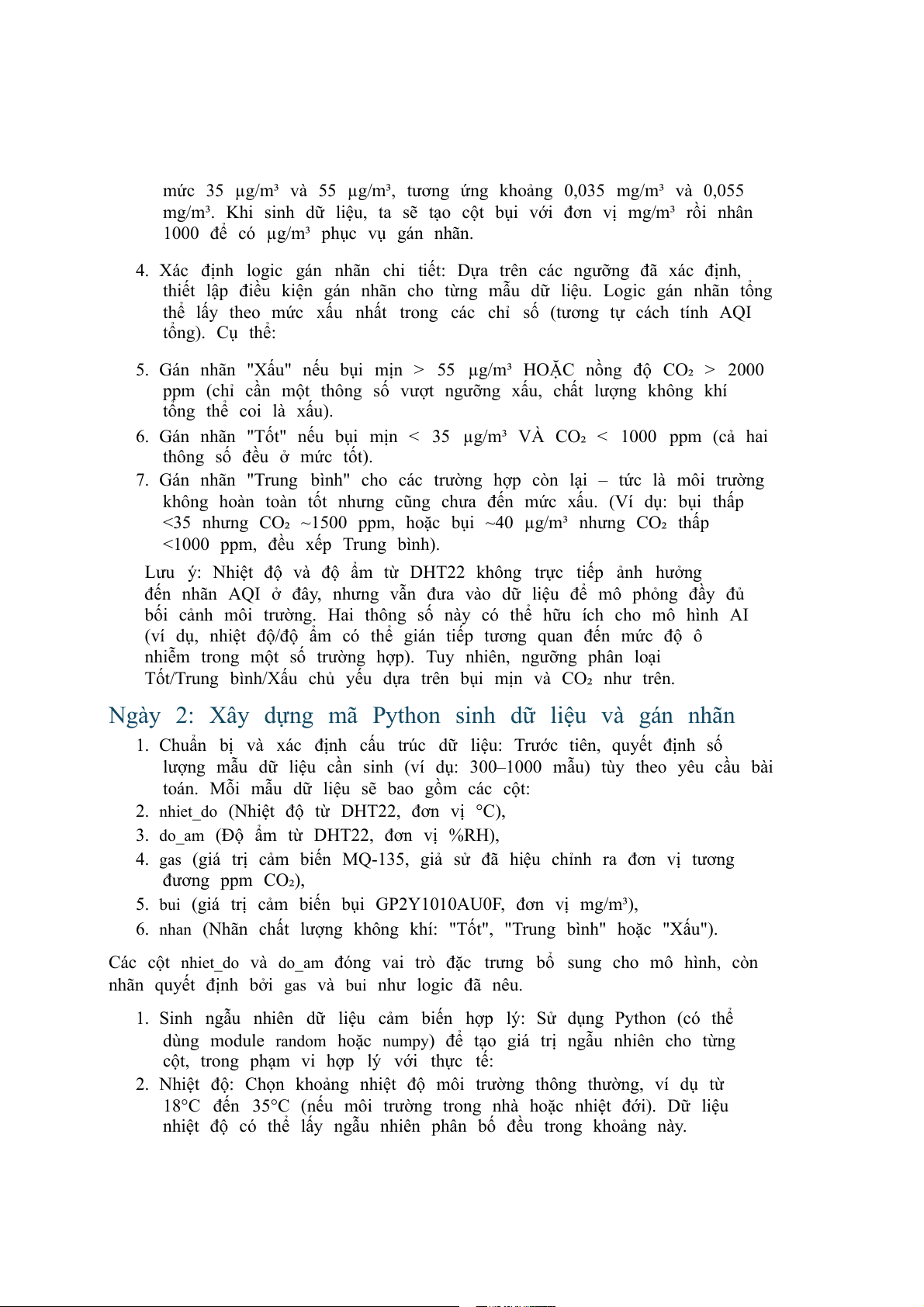 Ngày 1: Nghiên cứu chuẩn AQI và thiết kế tiêu chí gán nhãn