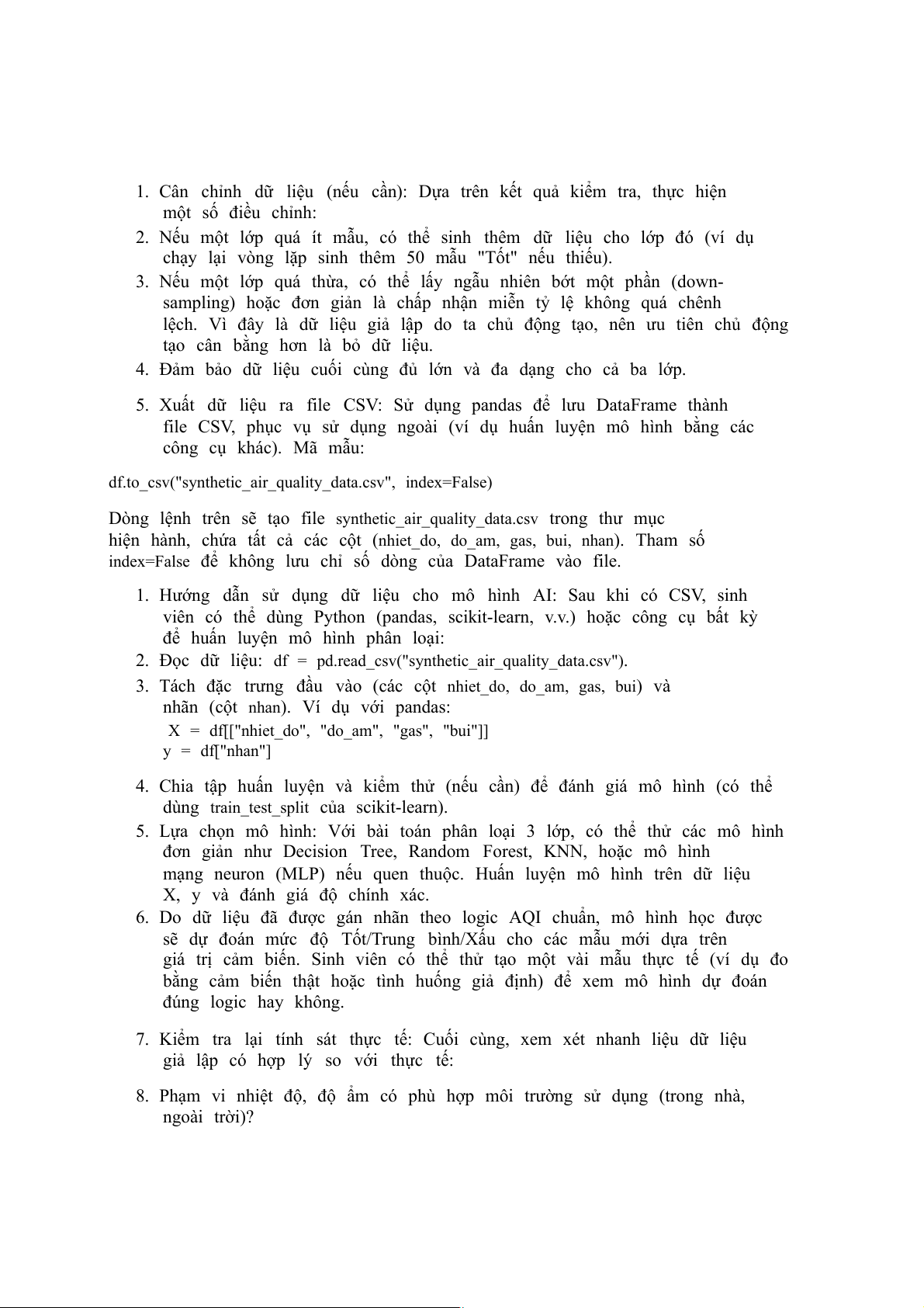luyện mô hình AI phân loại chất lượng không khí, hoặc tiếp tục mở rộng tập