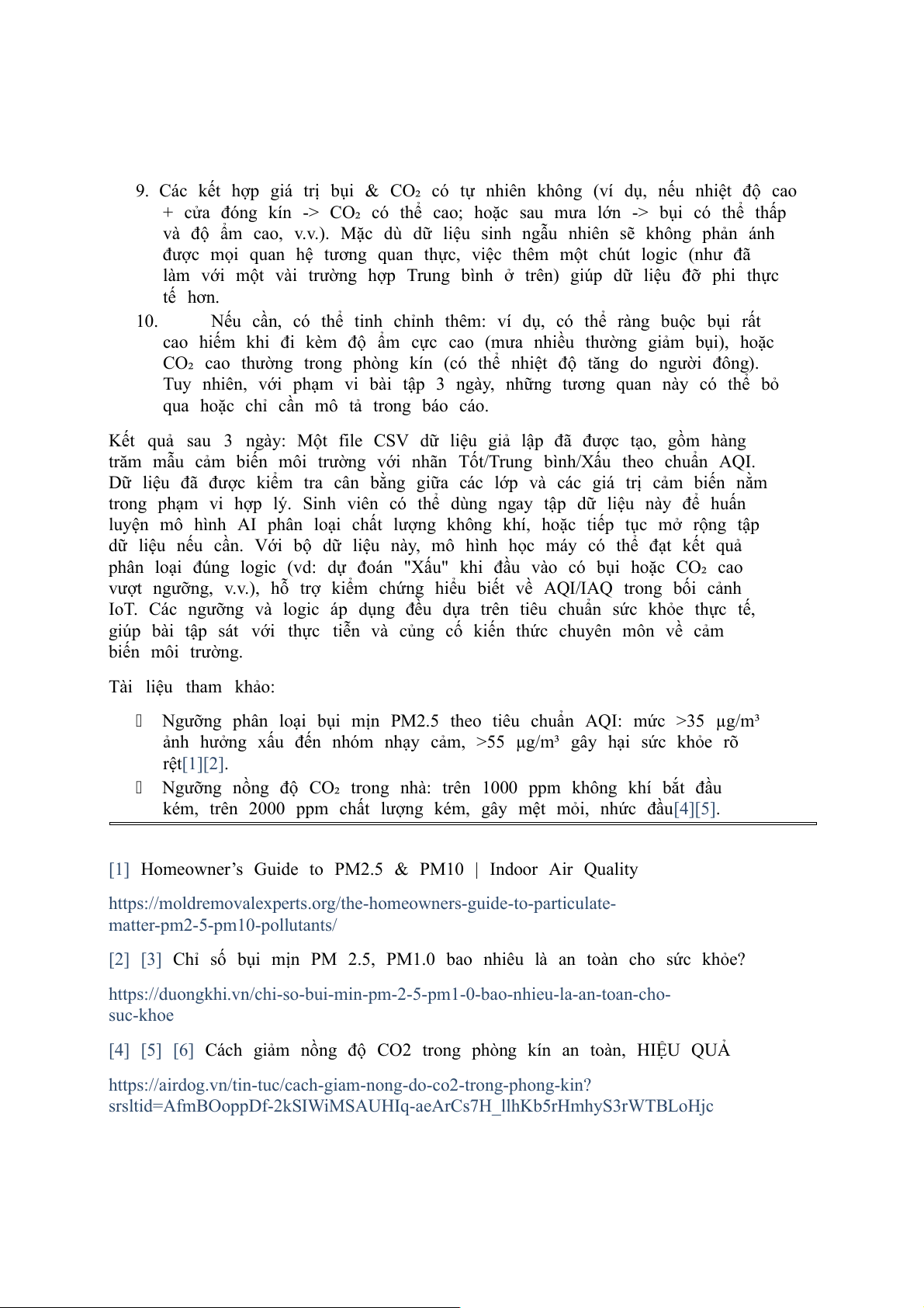 ppm (chỉ cần một thông số vượt ngưỡng xấu, chất lượng không khí tổng thể coi là xấu). 6. Gán nhãn "Tốt" nếu bụi