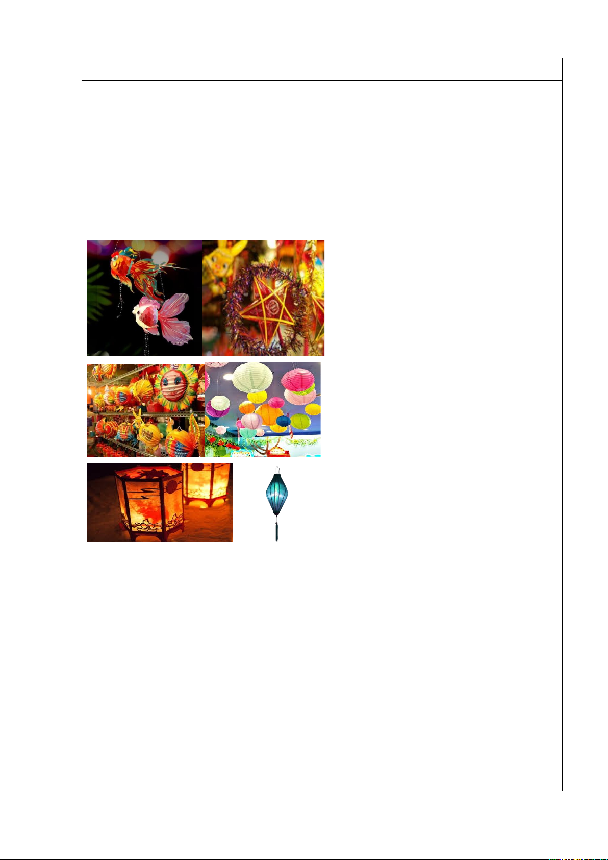- Nói và mô tả được các loại đèn lồng mà mình biết.