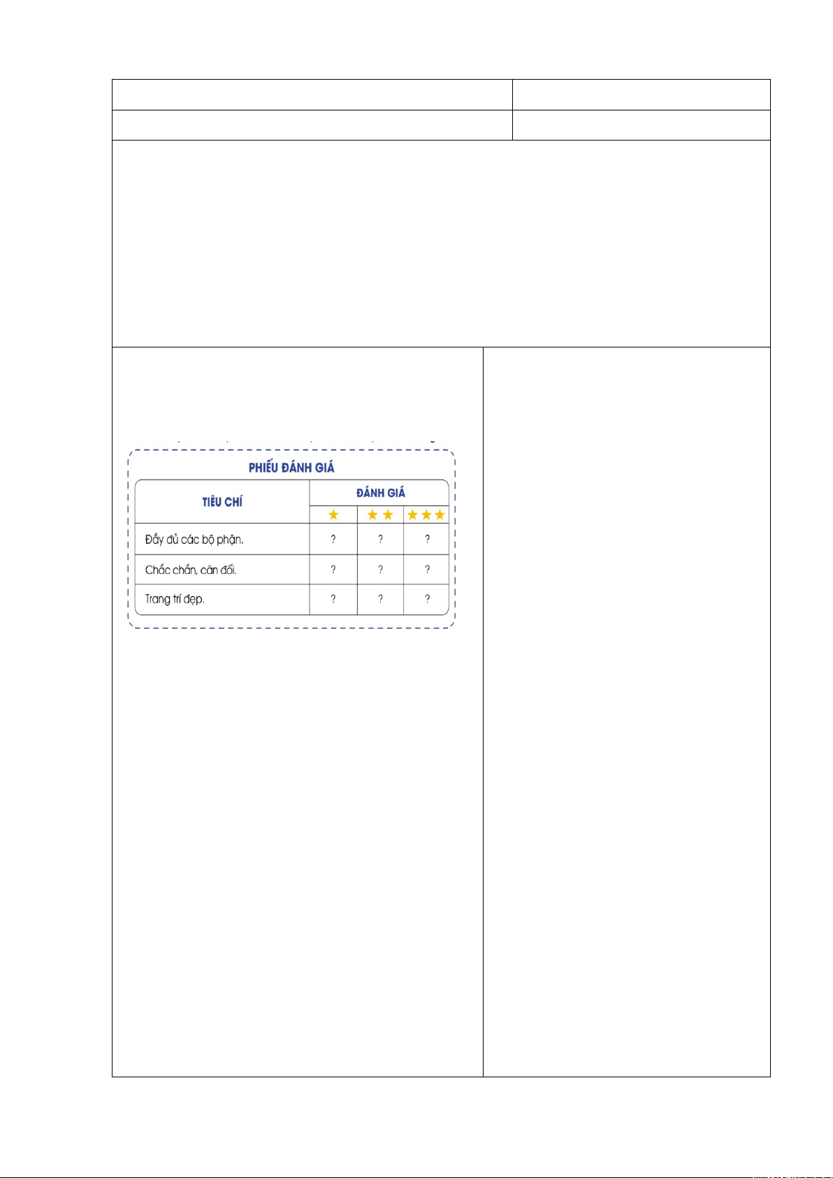 - Nhận xét, đánh giá về sản phẩm của mình và của các bạn theo tiêu chí.