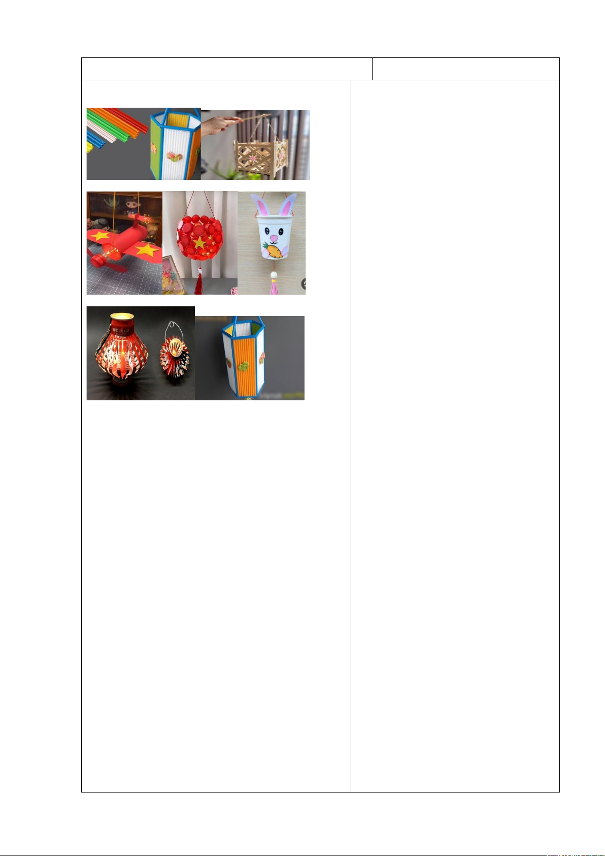 - Nêu được ý tưởng làm đèn lồng từ vật liệu tận dụng.
