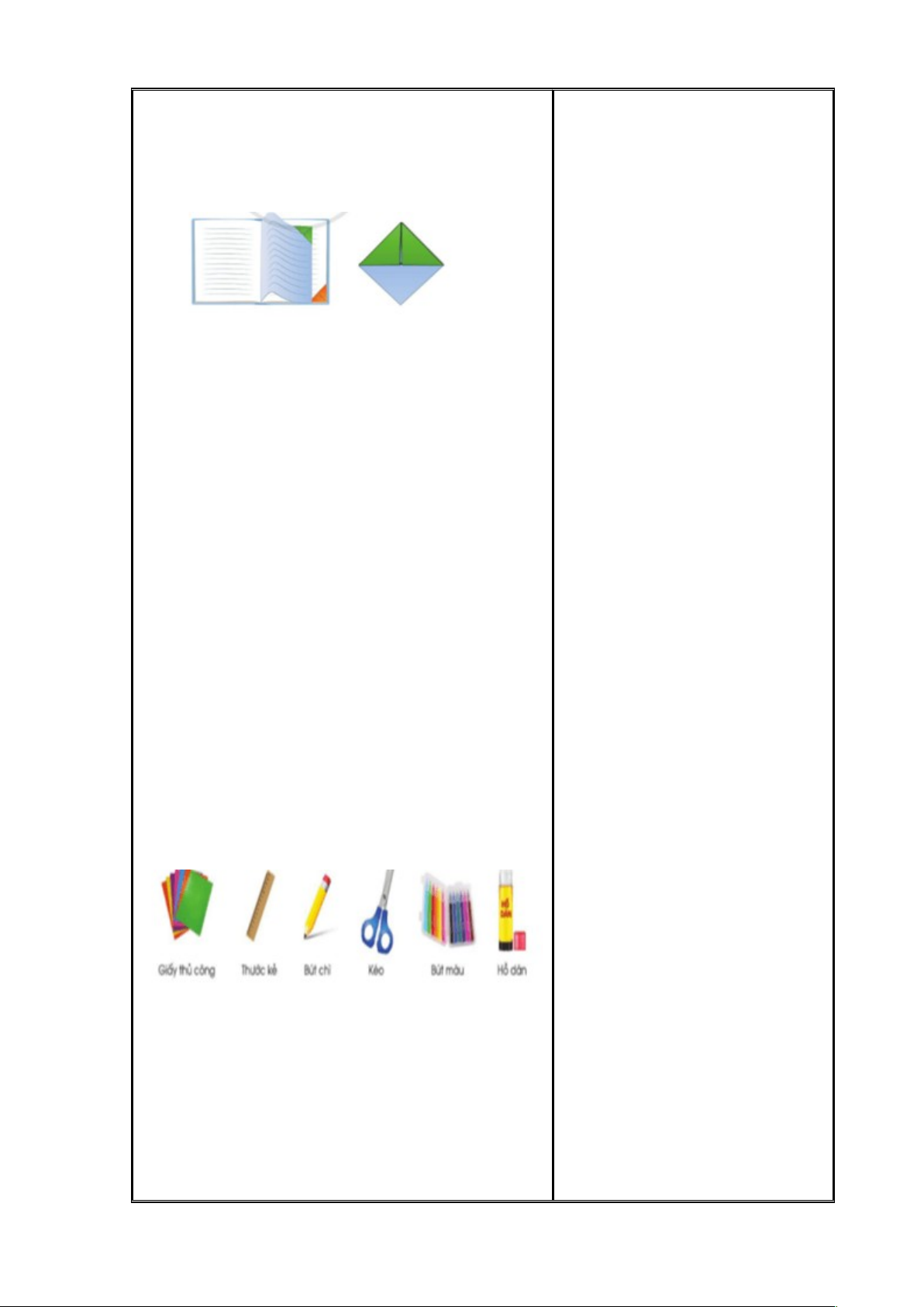 - Năng lực giao tiếp và hợp tác: Mô tả được các bước làm một dụng cụ học tập từ các dụng cụ và vật liệu thủ công. Có thói quen trao đổi, giúp đỡ nhau trong học tập, biết cùng nhau hoàn thành nhiệm vụ học tập theo sự hướng dẫn của thầy cô.
