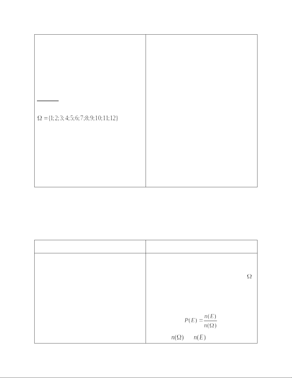 Phiếu học tập số 1 Một hộp chứa 12 tấm thẻ được đánh số 1;2;3;4;5;6;7;8;9;10;11;12. Rút ngẫu nhiên từ hộp đó một tấm thẻ. a) Mô tả không gian mẫu.................................................................................................... Các kết quả có thể có đồng khả năng không? Có bao nhiêu kết quả như thế? ........................................................................................................................................................................................................................................................................................ b)Xét biến cố D: “Rút được thẻ có ghi số chia hết cho 4”. Biến cố D có bao nhiêu kết quả thuận lợi? ........................................................................................................................................................................................................................................................................................ Làm sao biết được khả năng xảy ra của biến cố D có cao không? (giả sử khả năng xảy ra trên 50% được gọi là khả năng cao). .................................................................................................................................................................................................................................................................................................................................................................................................................................... |