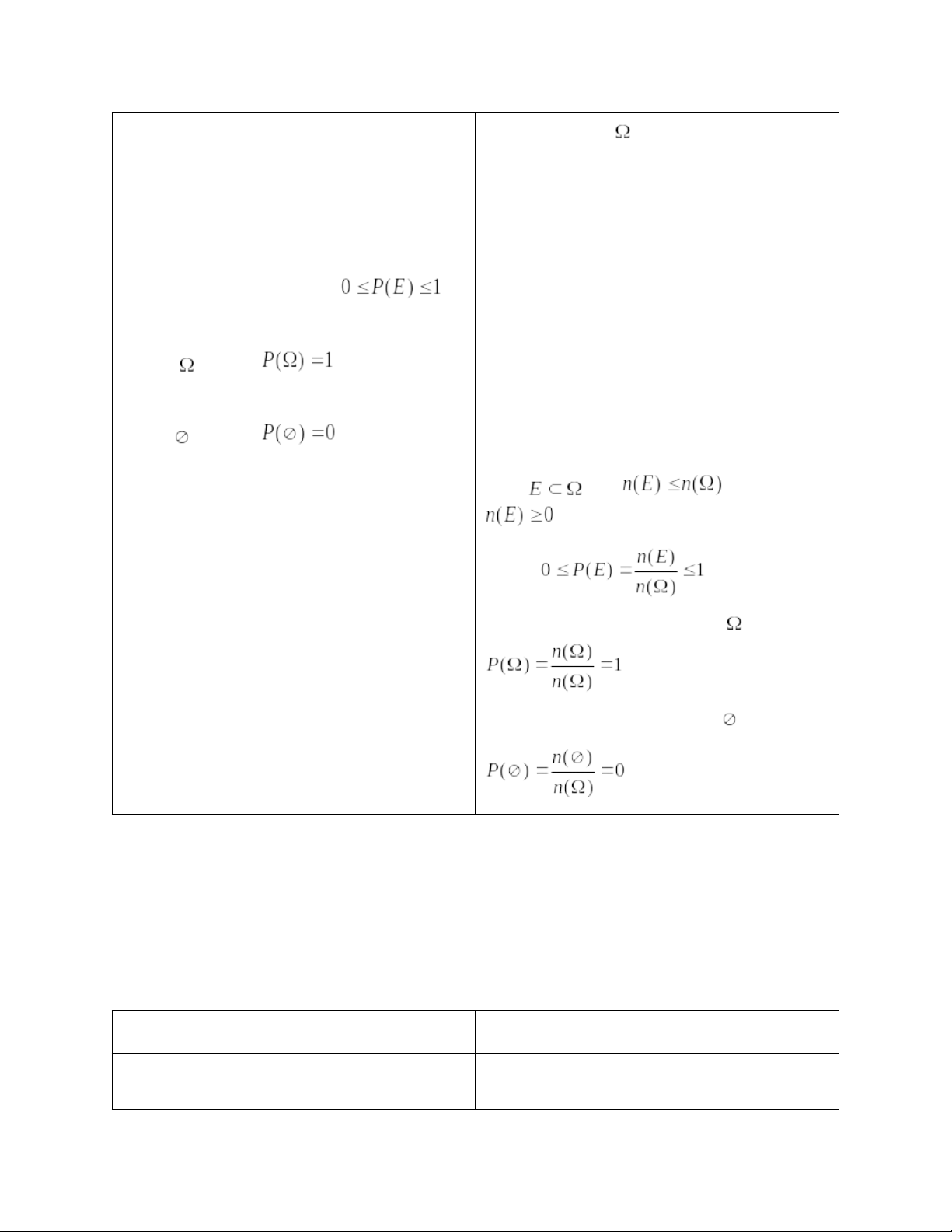 trong đó - GV yêu cầu học sinh nhận xét tính chất xác suất của E. - GV nhận xét, đánh giá. - GV giải thích các nhận xét của HS + Vì Do đó + Vì biến cố chắc chắn là tập + Vì biến cố không thể là tập