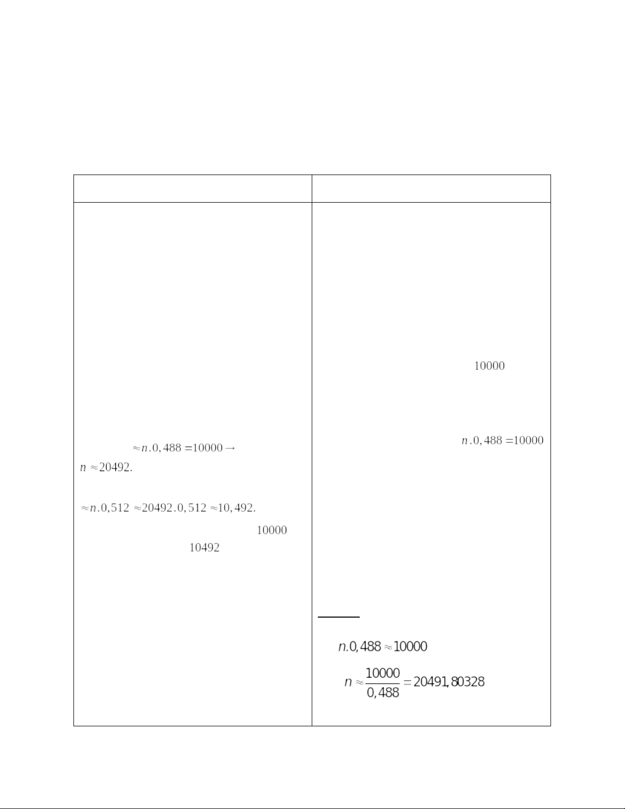 - GV theo dõi, hỗ trợ các nhóm nếu gặp khó khăn trong việc tính toán. GV có thể gợi ý cho học sinh: Vận dụng ý nghĩa thực tế của xác suất, ước lượng số trẻ mới sinh. - GV nhận xét, đưa ra lời giải chính xác: Lời giải: Vận dụng ý nghĩa thực tế của xác suất, ta có: Vậy Vậy có khoảng 20 492 trẻ mới sinh. Từ đó với 10 000 bé gái thì có khoảng: