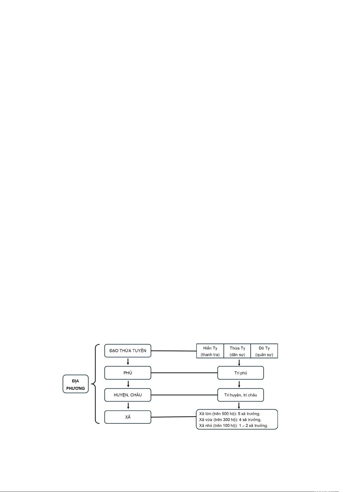 Cả nước được chia làm 12 đạo ( sau đổi gọi là thừa tuyên), đến năm 1471 có thêm đạo thừa tuyên thứ 13 Quảng Nam. Đứng đầu Thừa Tuyên là các Tuyên phủ sứ. Hệ thống cơ quan chuyên trách gồm: Thừa Tỵ ( dân sự), Đô ty ( quân sự) và Hiến ty ( tư pháp). Kinh thành Thăng Long thuộc một đơn vị hành chính đặc biệt gọi là phủ Trung Đô, về sau đổi gọi là phủ Phụng Thiên Năm Bính Tuất ( 1466), tháng 6,… Đổi lộ thành phủ, đổi trấn thành châu, đổi An phủ sứ các lộ thành Tri phủ, Trấn phủ thành đồng Tri phủ, Chuyển vận thành Tri huyện, Tuần sát thành Huyện thừa,...