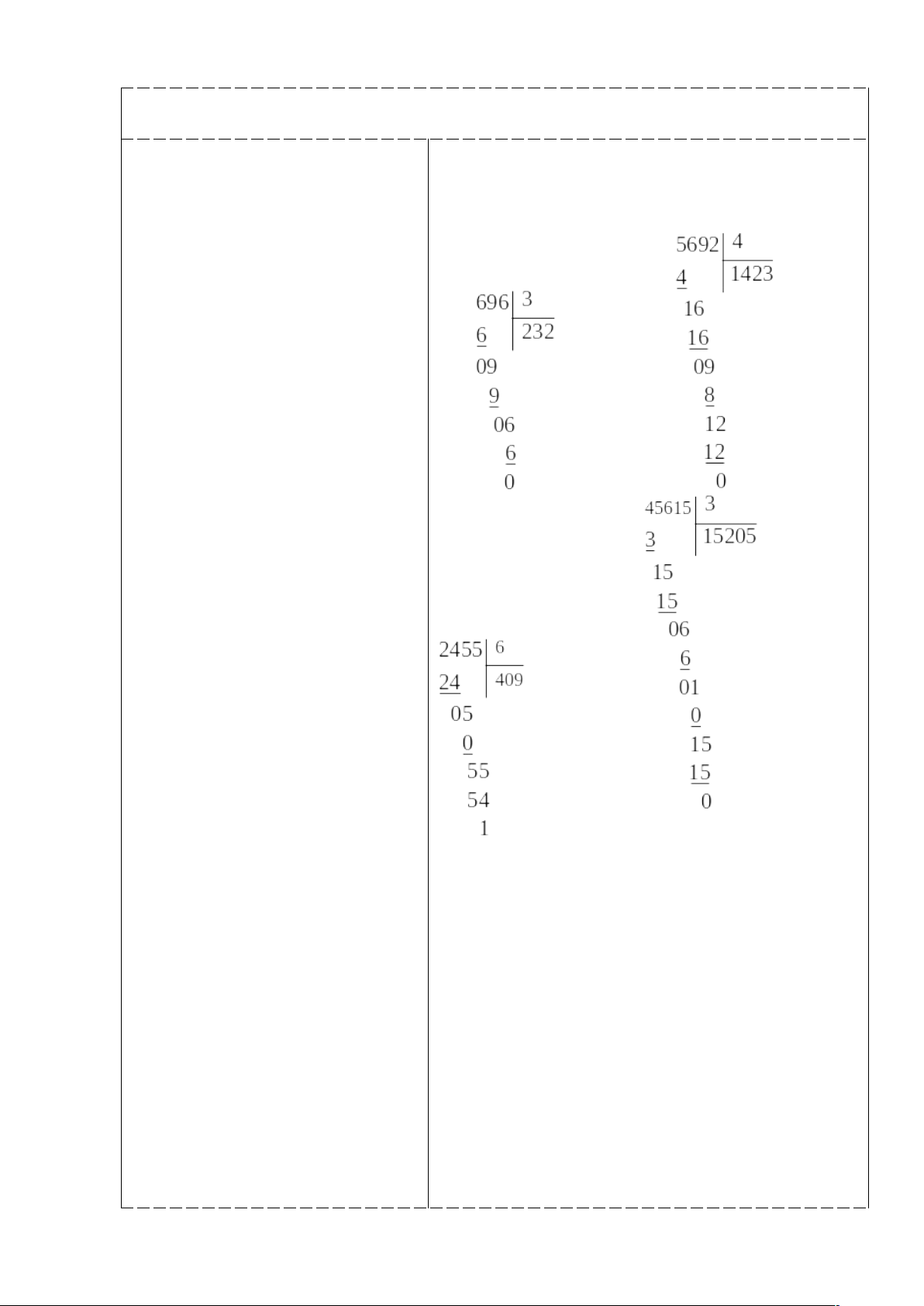 - HS biết cách đặt tính và thực hiện được chia số có nhiều chữ số cho số có