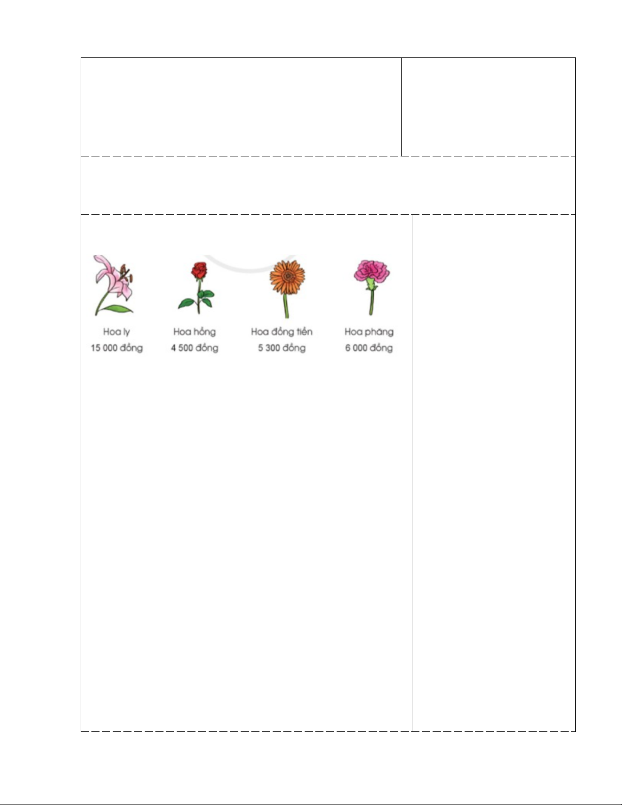 - Mục tiêu: Nói được giá tiền của mỗi bông hoa trong bức tranh