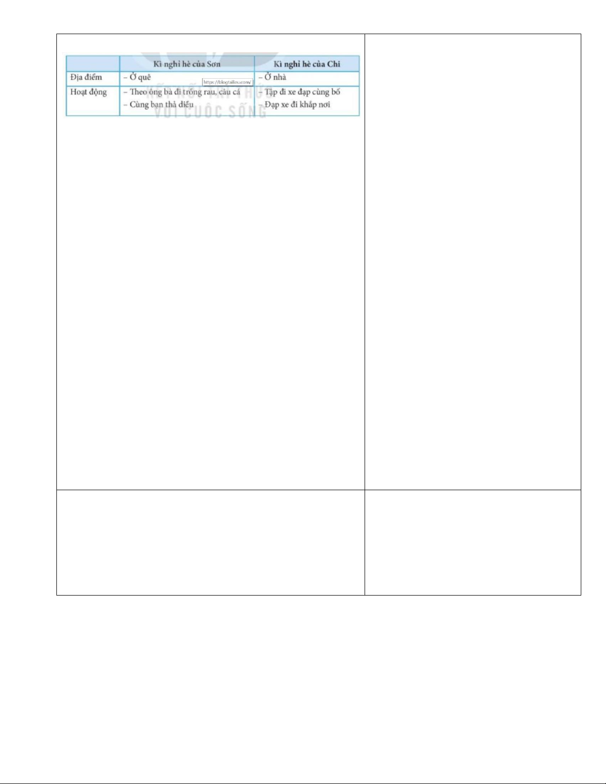 và Sơn sau kì nghỉ hè. Hai bạn nhỏ chia sẻ với nhau