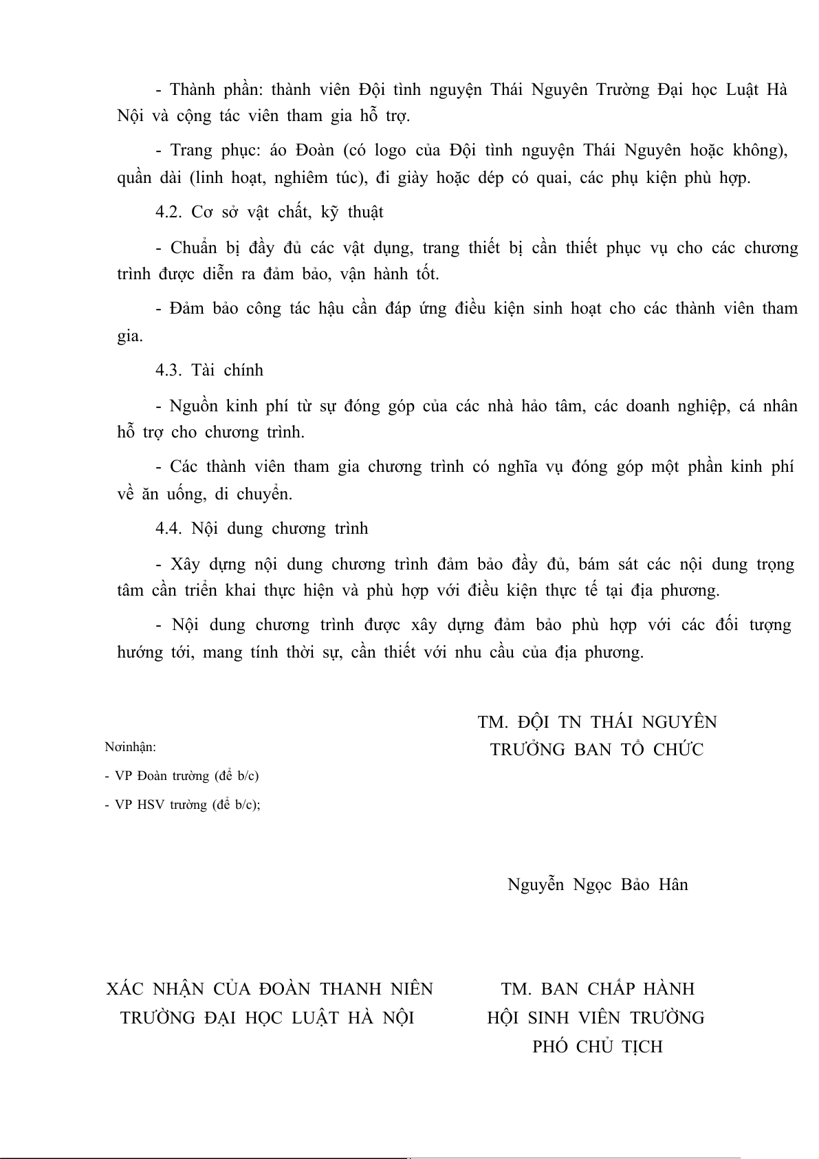 - Trang phục: áo Đoàn (có logo của Đội tình nguyện Thái Nguyên hoặc không),