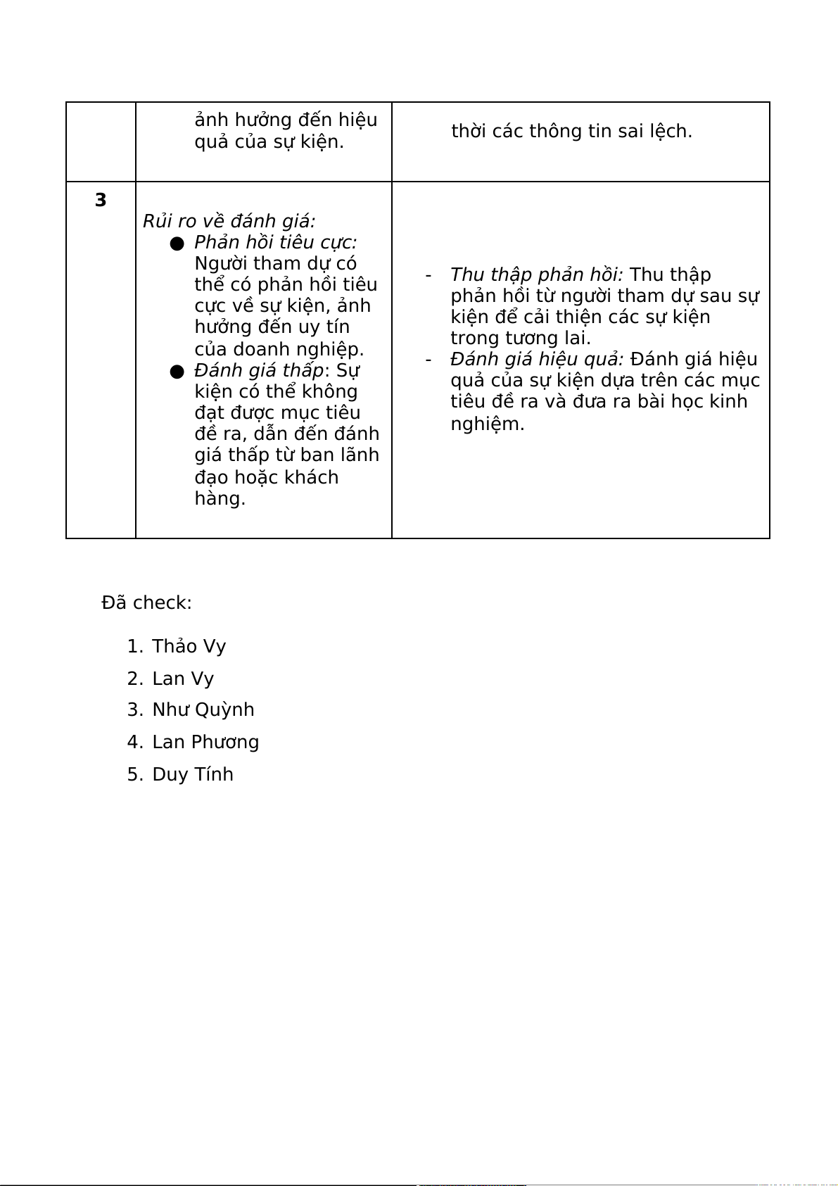 tiêu đề ra và đưa ra bài học kinh đề ra, dẫn đến đánh nghiệm. giá thấp từ ban lãnh đạo hoặc khách hàng. Đã check: 1. Thảo Vy 2. Lan Vy 3. Như Quỳnh 4. Lan Phương 5. Duy Tính