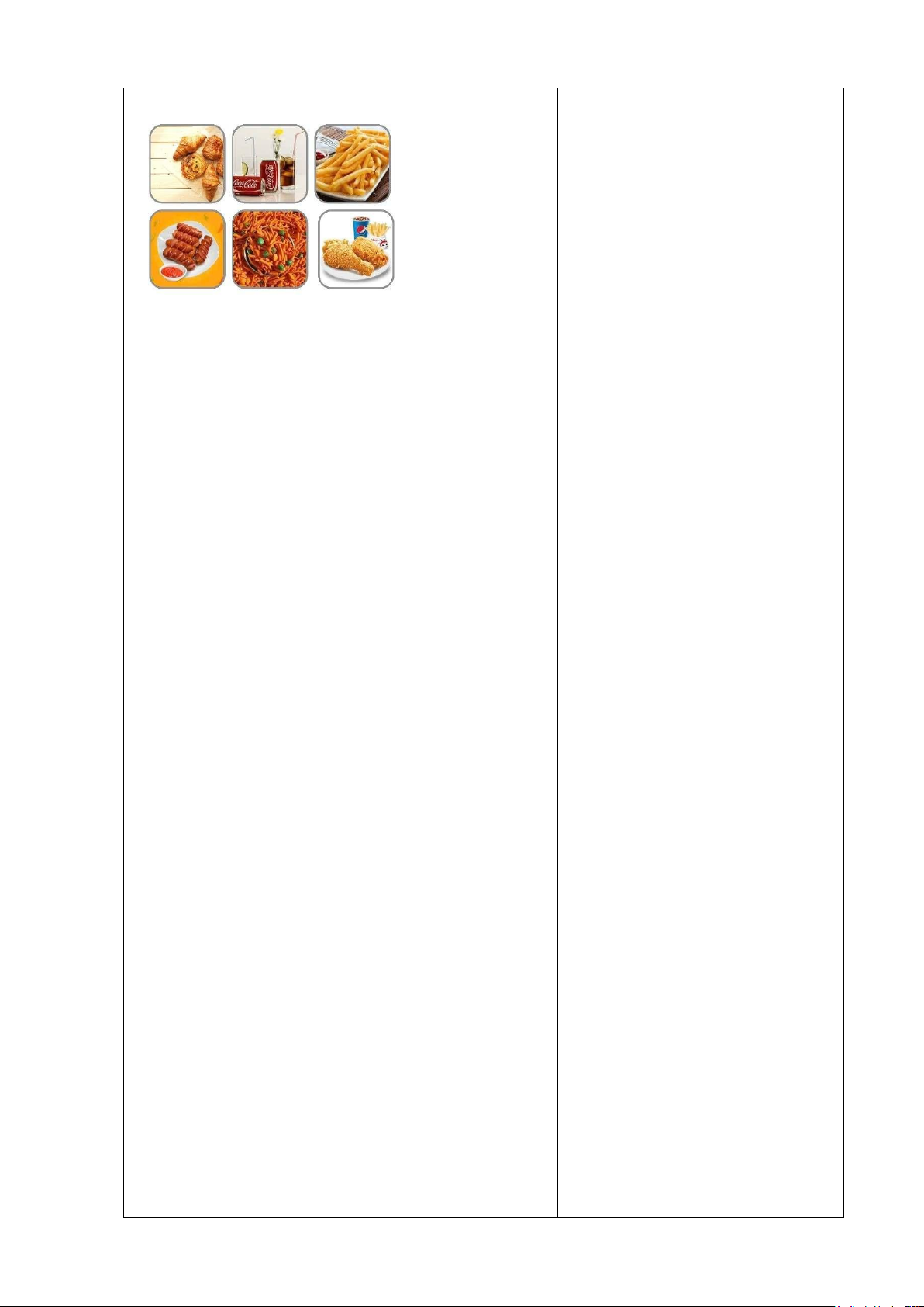 ngọt, khoai tây chiên, xúc xích, bim bim, đùi gà  rán…      lOMoAR cPSD| 60696302   -  Cách thực hiện: