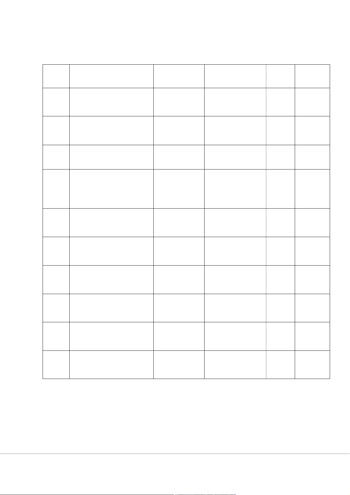 BẢNG NHIỆM VỤ VÀ ĐÁNH GIÁ CÁC THÀNH VIÊN STT HỌ VÀ TÊN MÃ SINH NHIỆM VỤ ĐIỂM CHỮ VIÊN KÝ 61 Phạm Khánh Ly 23D160038 Thuyết trình 62 Vũ Thị Vân Ly 23D160134 Nội dung B2 63 Lê Thị Minh 23D160027 Nội dung B4 64 Nguyễn Đức Hải Minh 23D160028 Lên ý tưởng (Nhóm trưởng) Nội dung B7 Chỉnh sửa Hướng dẫn 65 Trần Thị Trà My 23D160189 Word Mở đầu Kêt luận 66 Vi Trà My 23D160238 Nội dung B1 67 Hồ Duy Nam 23D160029 Nội dung B5,6 68 Nguyễn Phương Nam 23D160086 Nội dung A 69 Nguyễn Xuân Nam 23D160190 Nội dung B3 70 Nguyễn Thị Ngà 23D160087 Chỉnh sửa video