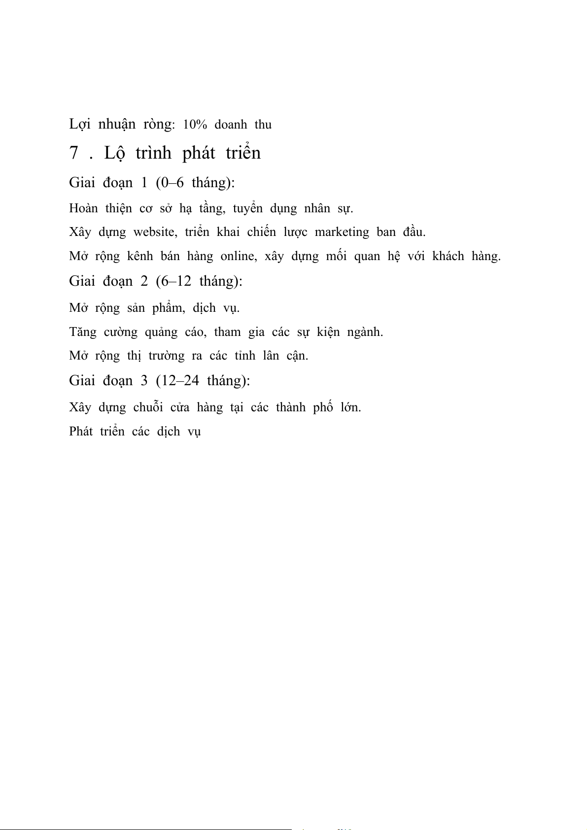 Lợi nhuận ròng: 10% doanh thu 7 . Lộ trình phát triển