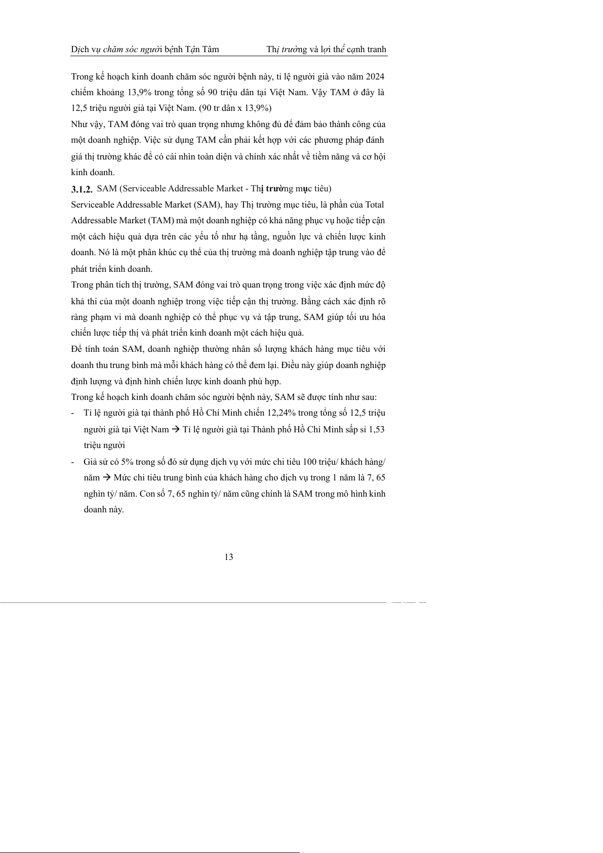 Trong kế hoạch kinh doanh chăm sóc người bệnh này, SAM sẽ được tính như sau: