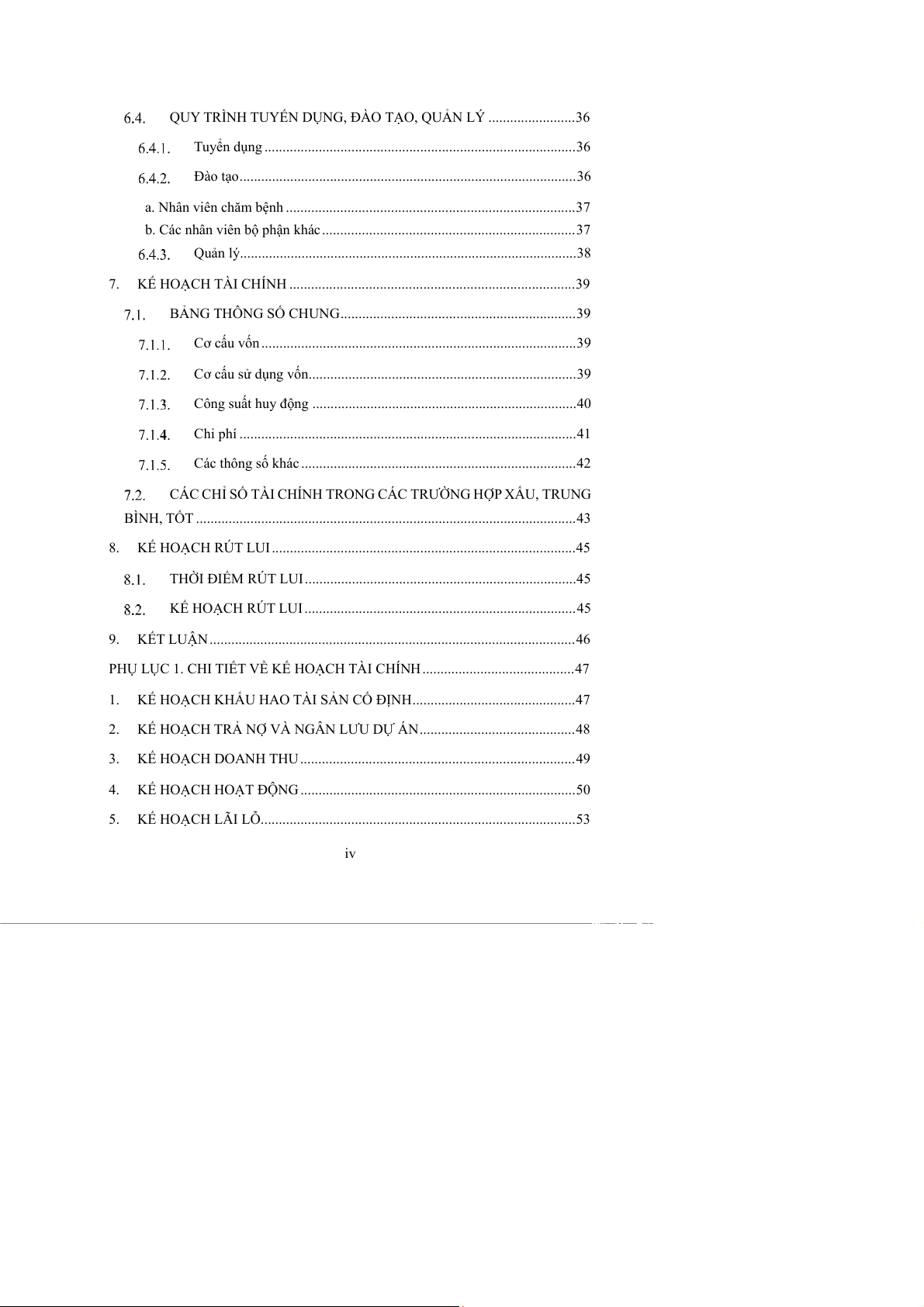 PHỤ LỤC 1. CHI TIẾT VỀ KẾ HOẠCH TÀI CHÍNH .......................................... 47