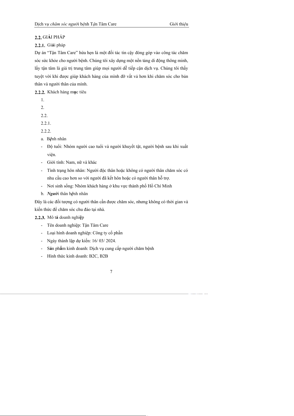 kế hoạch kinh doanh chăm sóc người bệnh này, SAM sẽ được tính như sau: Mỗi tháng có 15 k