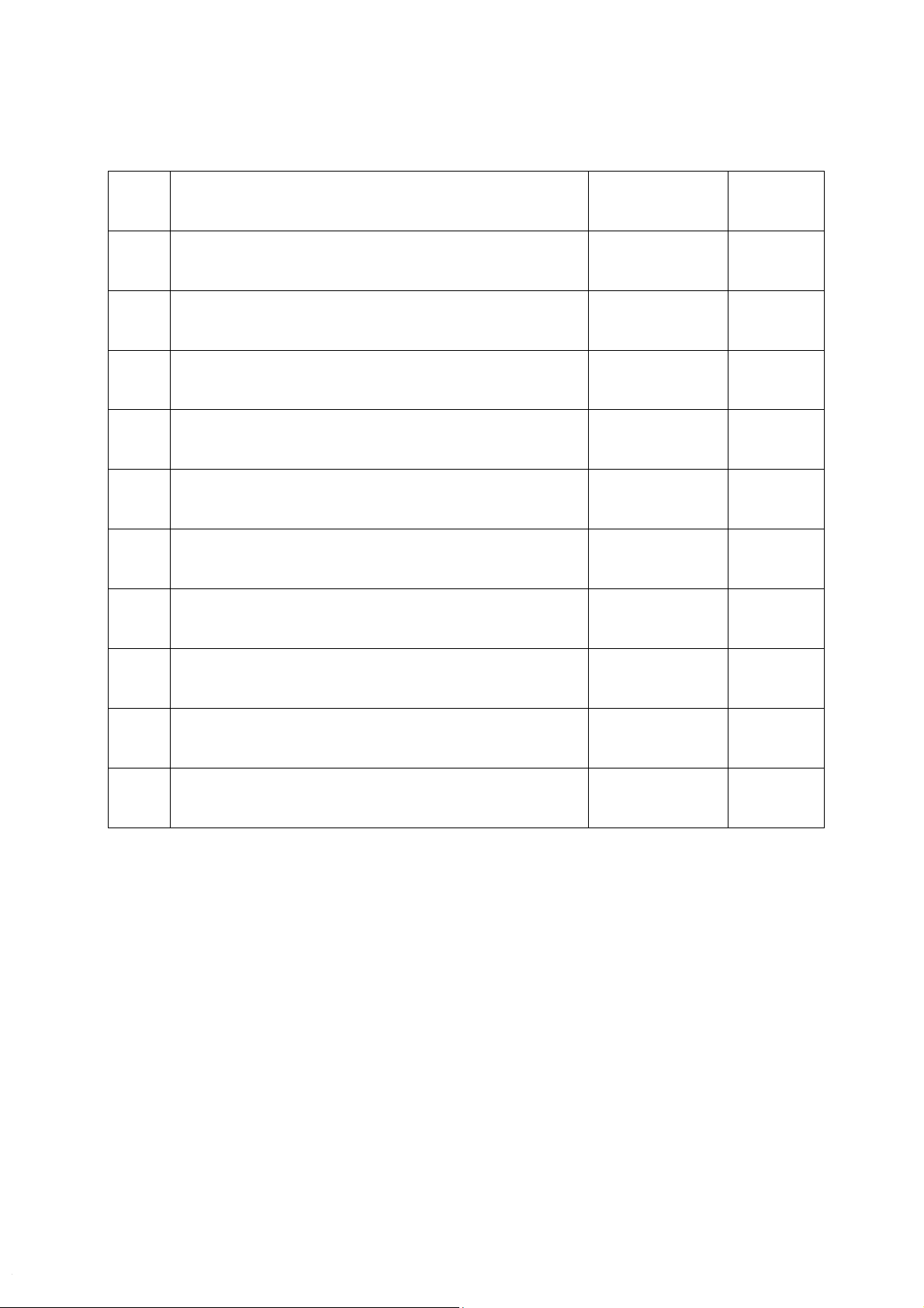 ĐÁNH GIÁ QUÁ TRÌNH LÀM VIỆC NHÓM STT Họ và tên MSV Đánh giá 1 Nguyễn Thái An 23D400001 10 2 Nguyễn Kim Anh 23D400002 10 3 Nguyễn Trần Thảo Anh 23D400045 10 4 Trần Thị Ngọc Ánh 23D400046 10 5 Nguyễn Đức Bình 23D400047 10 6 Nguyễn Mai Chi 23D400048 10 7 Trần Thị Mai Chi 23D400003 10 8 Trịnh Thị Kim Chi 23D400049 10 9 Nông Phương Diệp 23D400004 10