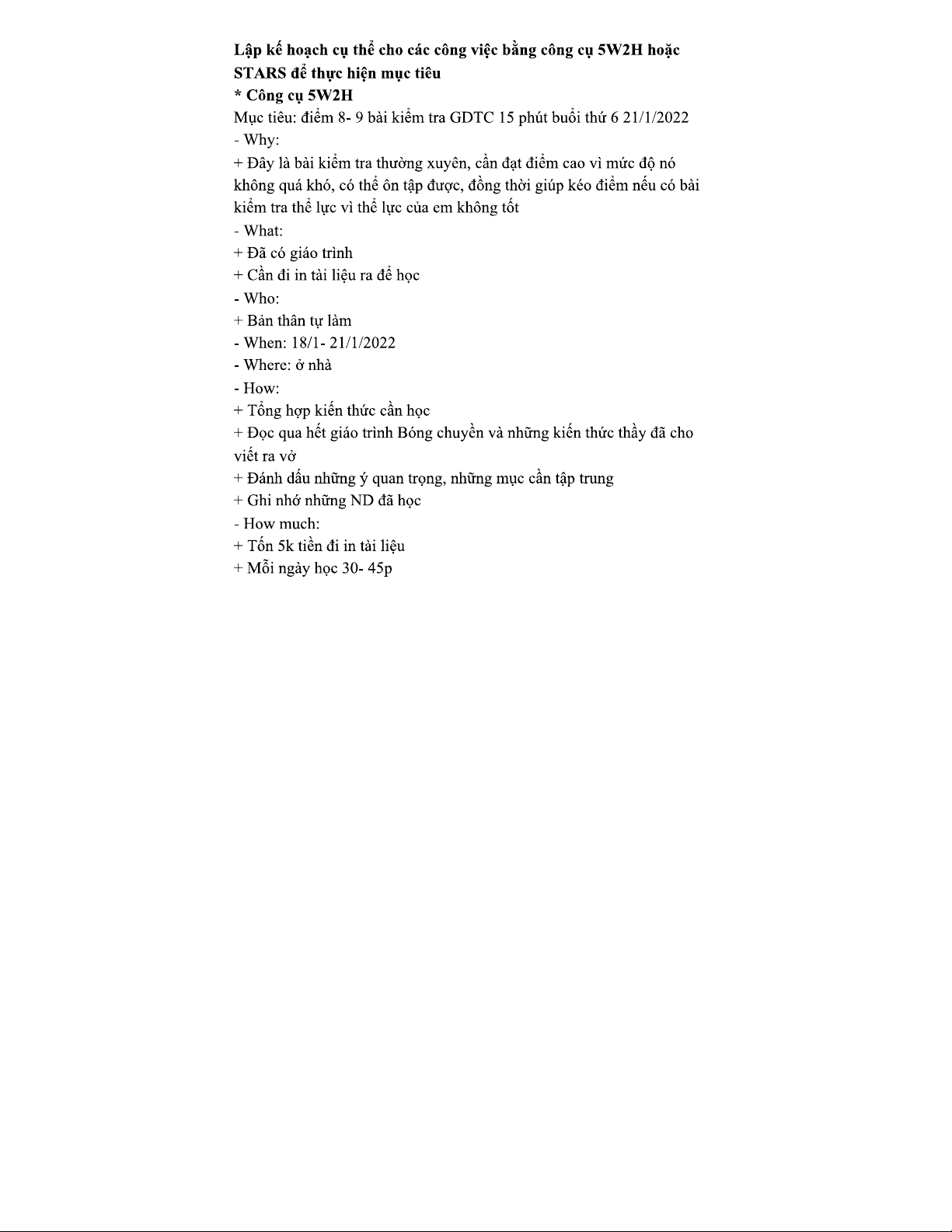 Kế Hoạch Làm Bài Kiểm Tra GDTC 15p - Công Cụ 5W2H