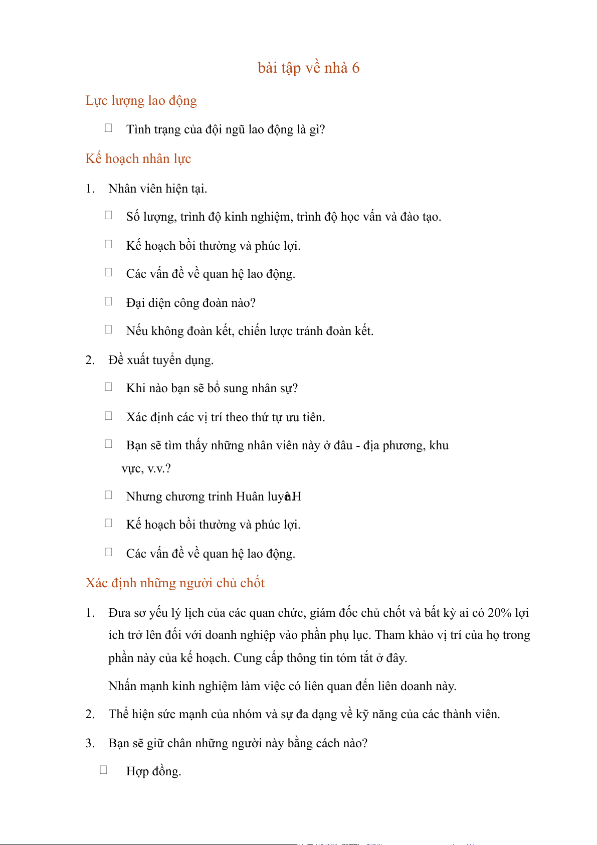 Tình trạng của đội ngũ lao động là gì? Kế hoạch nhân lực 1. Nhân viên hiện tại.