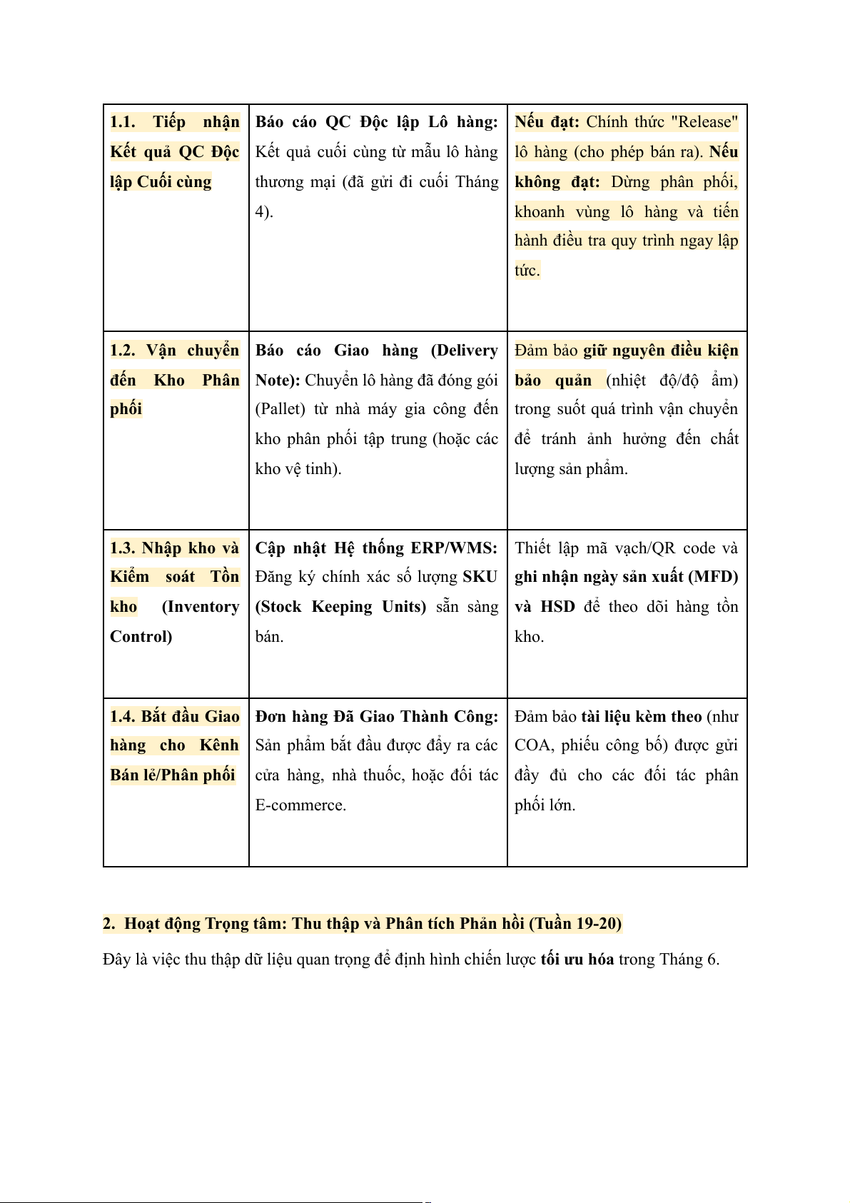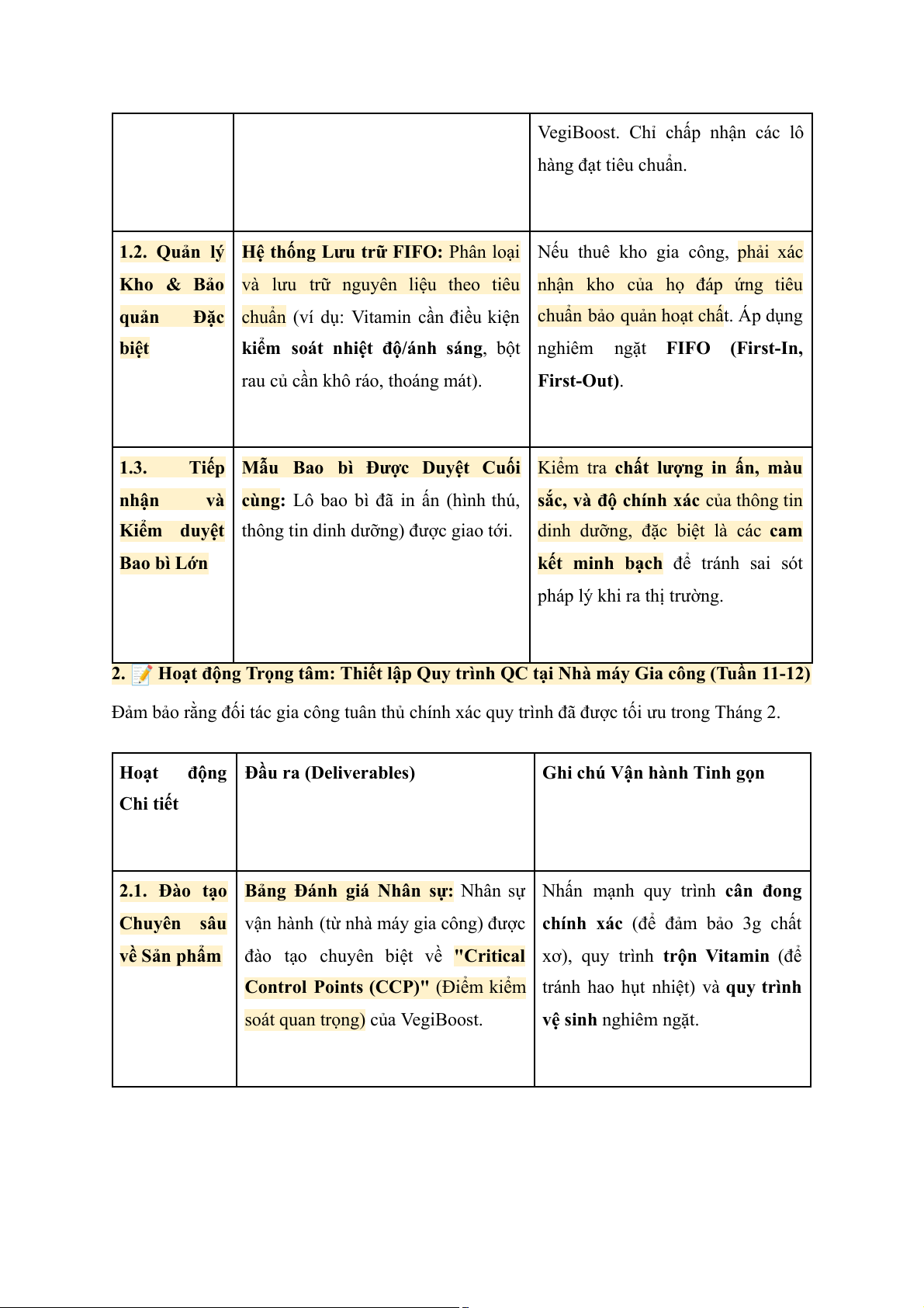1. Hoạt động Trọng tâm: Quản lý Chuỗi Cung ứng & Kiểm soát Đầu vào (Tuần 9-10) Hoạt