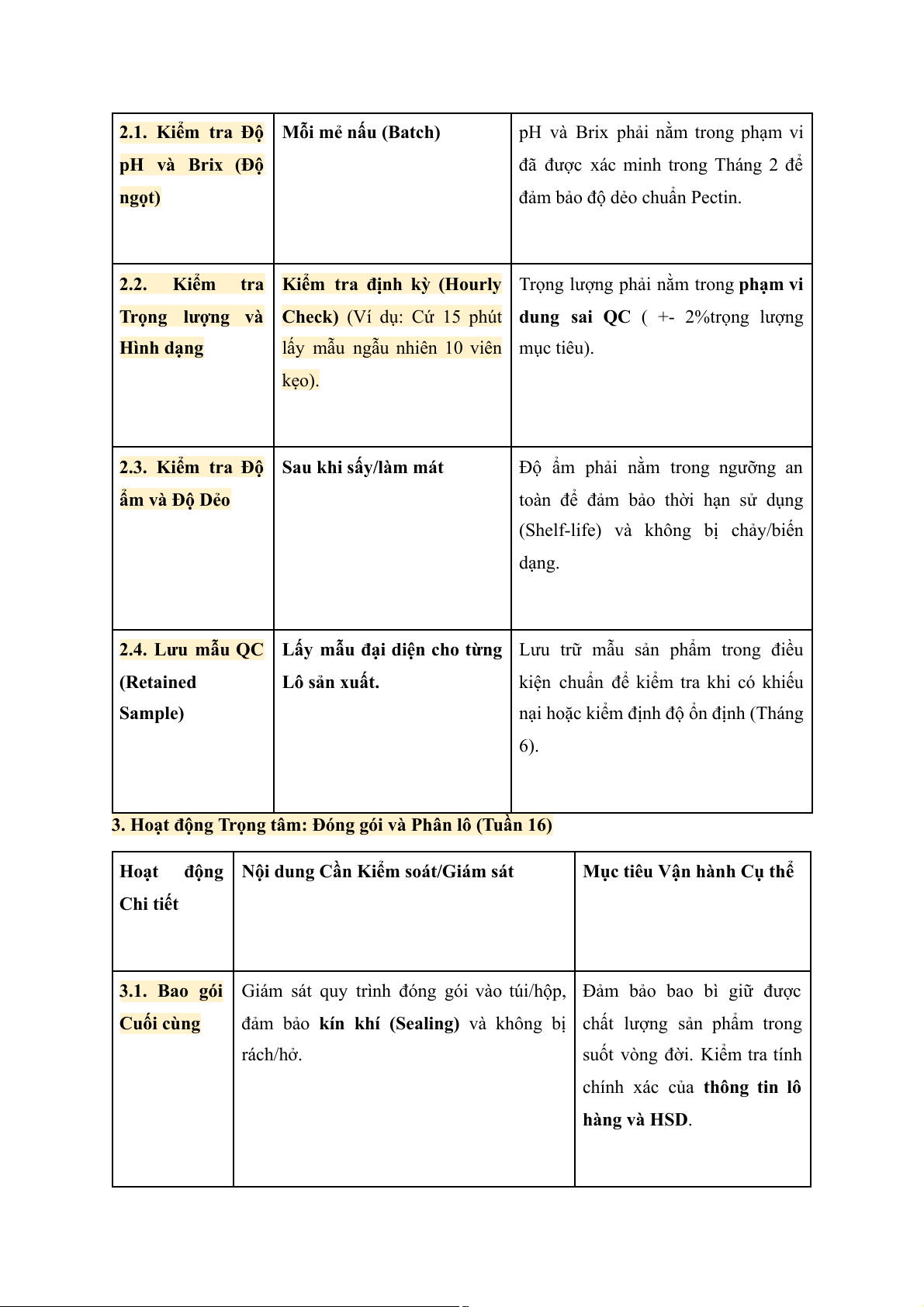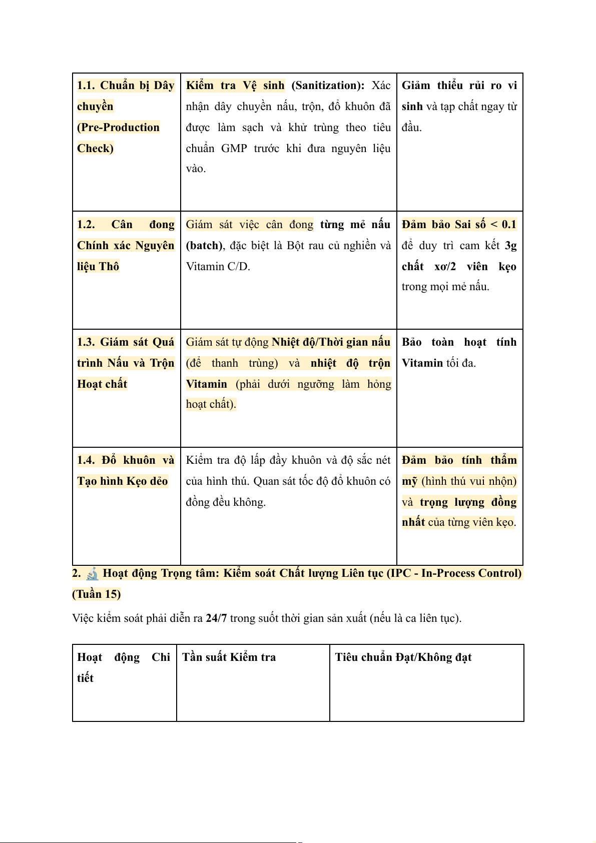 1.3. Kiểm tra Báo cáo QC nội bộ về trọng lượng Cần phải đảm bảo mỗi viên kẹo