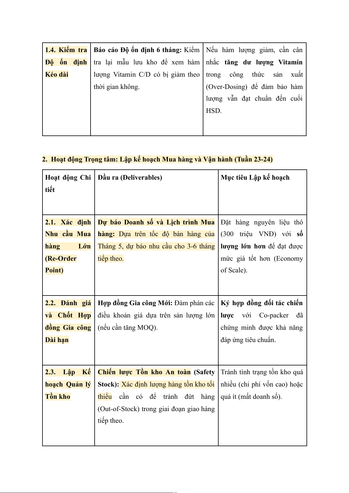 2. Hoạt động Trọng tâm: Lập kế hoạch Mua hàng và Vận hành (Tuần 23-24)
