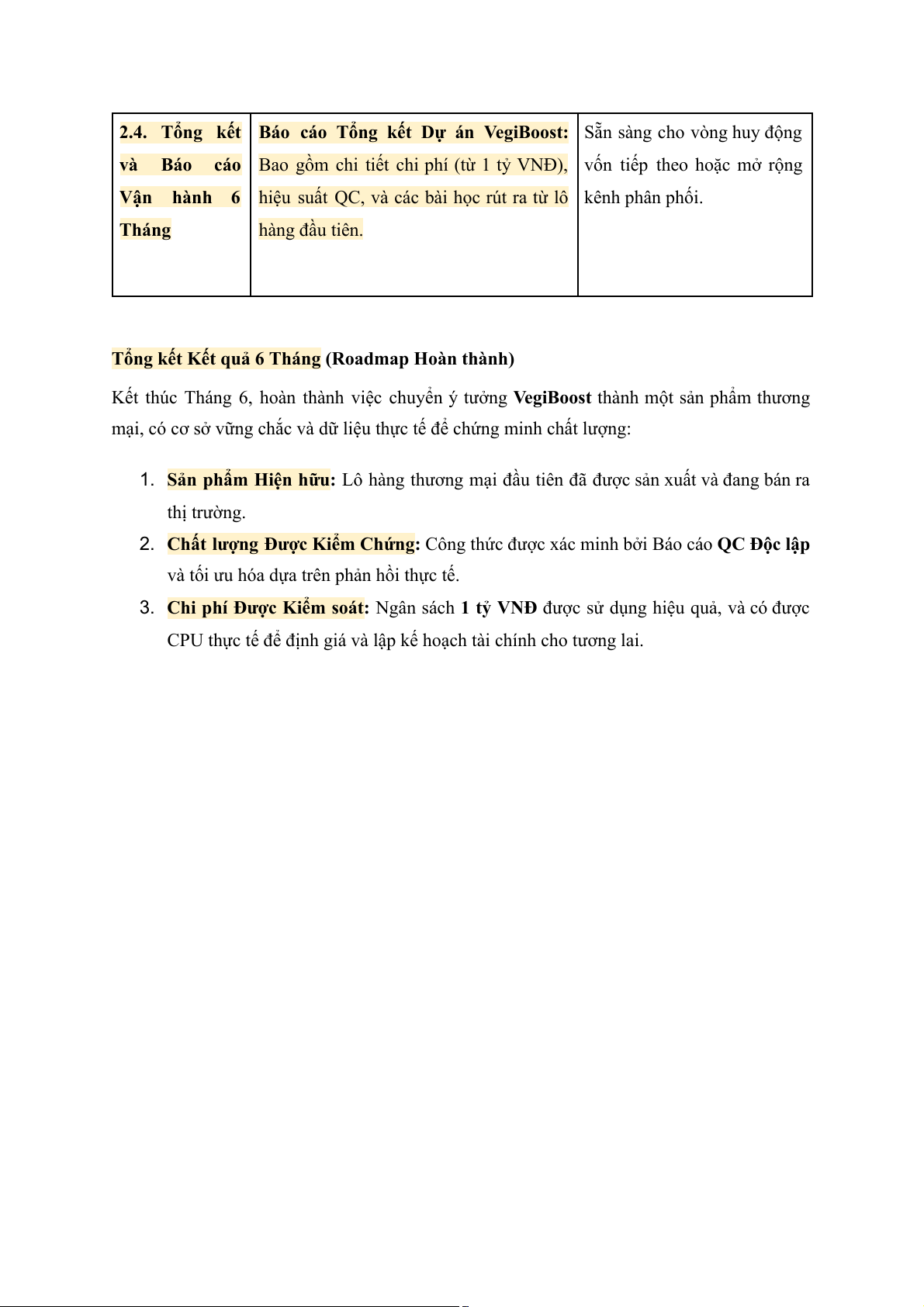 Kết thúc Tháng 6, hoàn thành việc chuyển ý tưởng VegiBoost thành một sản phẩm thương